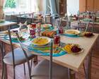 На территории оздоровительного комплекса имеется трехэтажный спальный корпус. Столовая расположена в отдельно стоящем сооружении из дерева. Одновременно в столовой может прибывать 50 человек. Для детей предусмотрено комплексное питание. При необходимости организовывается диетическое меню. Разработкой диет занимаются опытные специалисты. Все блюда готовят из натуральных продуктов. Ежедневно на столах присутствуют свежие овощи и фрукты.