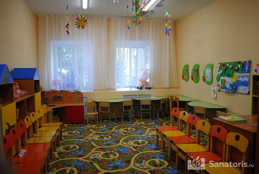 Пансионат для детей делит пациентов на две группы с учетом возраста пациентов. Дошкольная группа начинается с 4 лет и заканчивается 7 годами. Вторая группа – это школьники от 8 до 11 лет. Чтобы дети не отставали от сверстников для них на базе санатория организовано обучение по школьной программе. В будние дни дети занимаются по 2,5 часа.