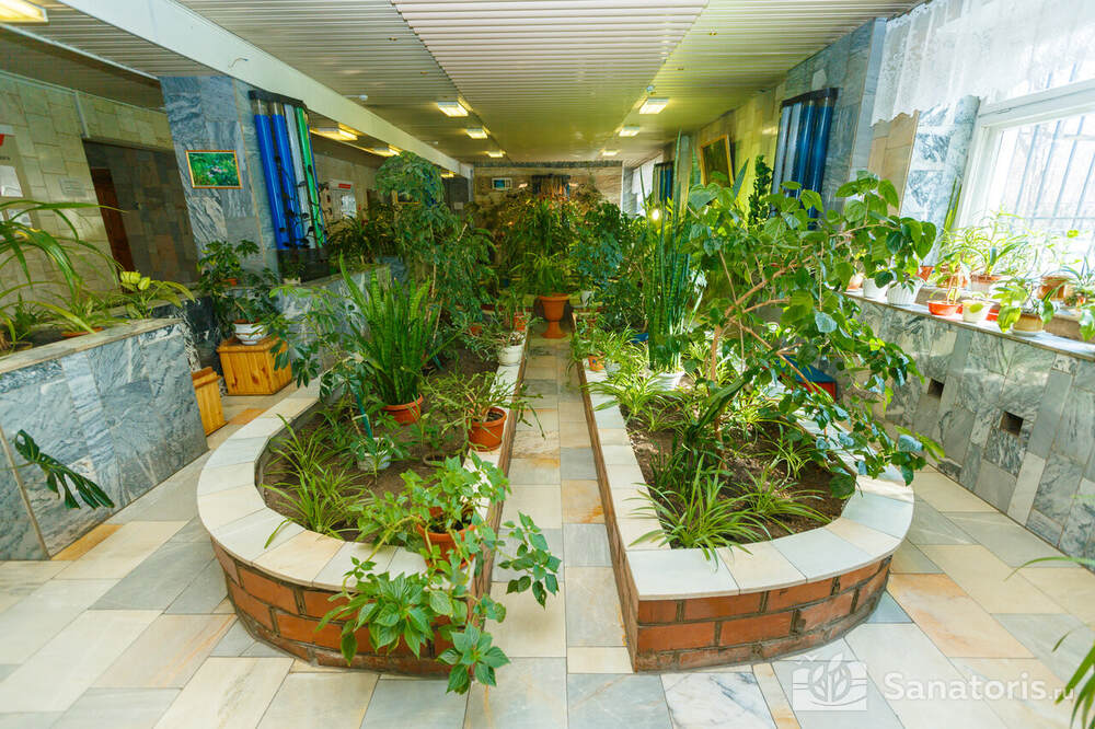 Комплекс располагает собственным зимним садом с декоративными растениями невероятной красоты. На свежем воздухе оборудованы спортивные площадки и детские площадки с качелями. В санатории есть тренажерный зал, фитнес клуб, аэрохоккей и настольный теннис.