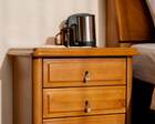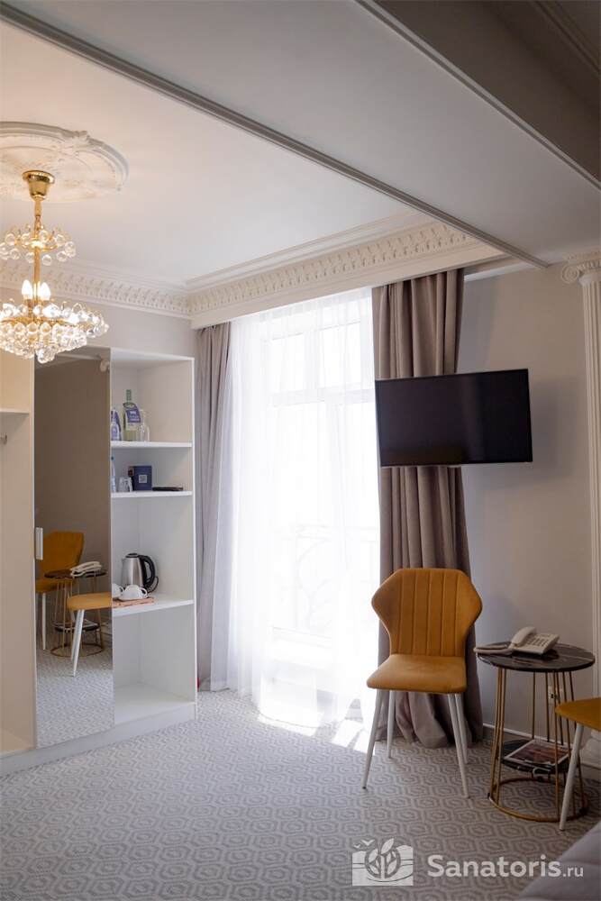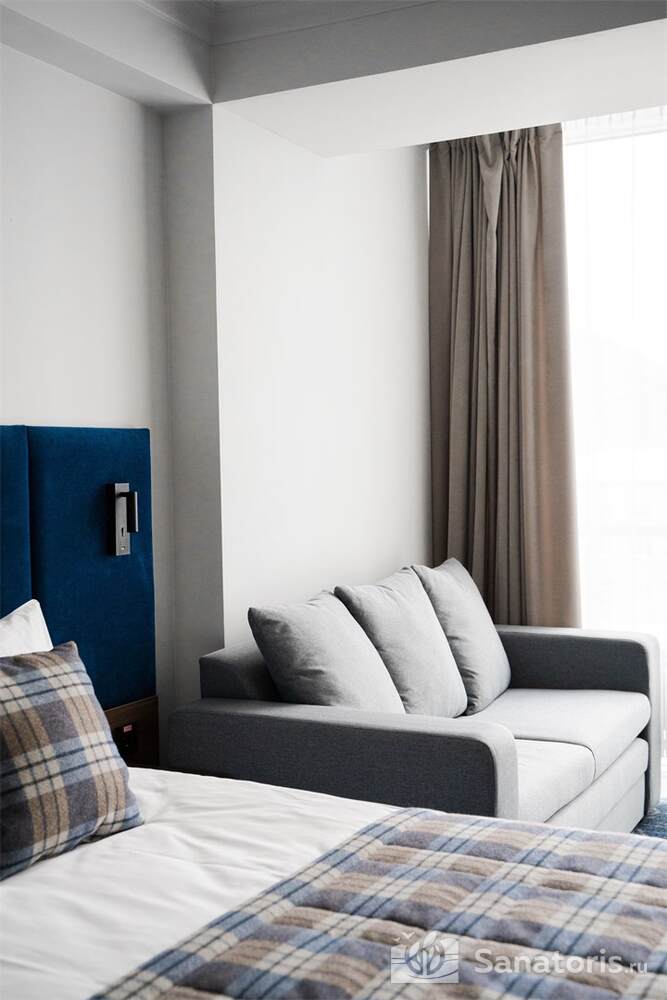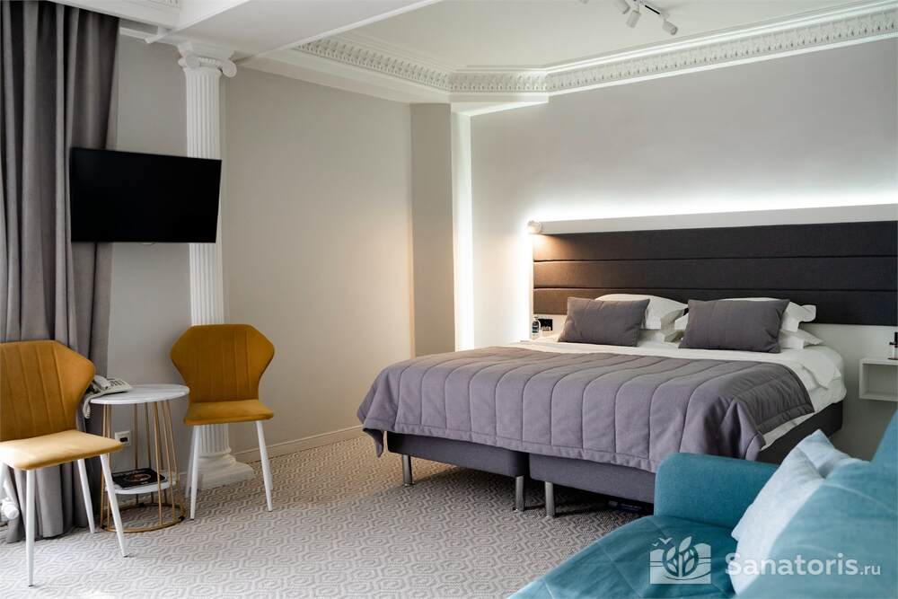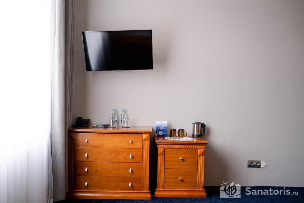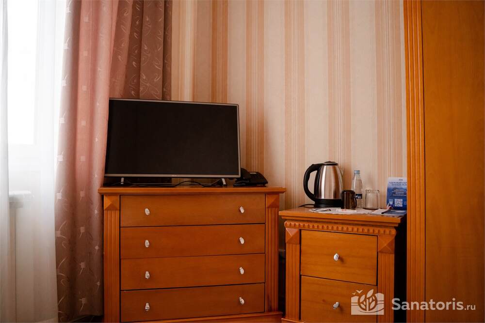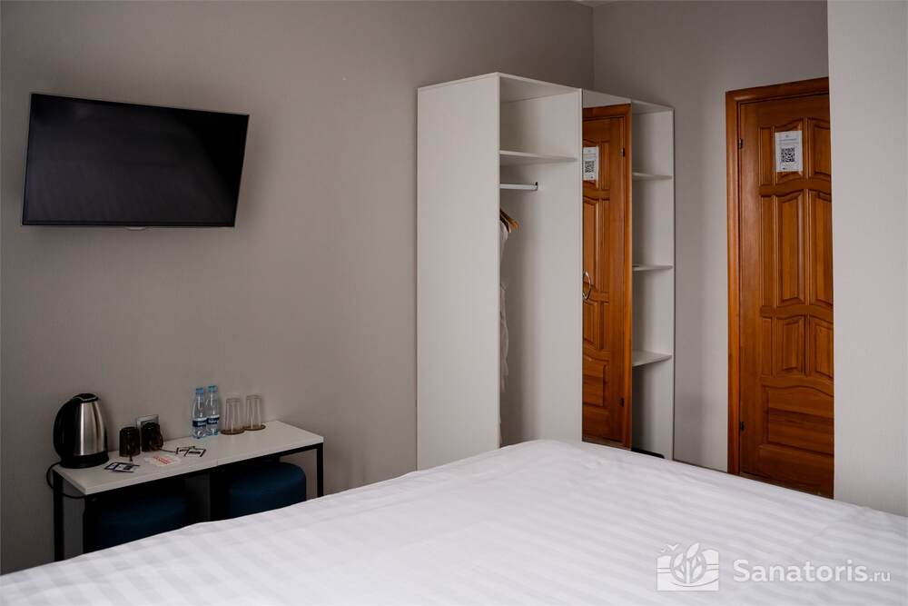 Постояльцы проживают в уютных номерах, которые выполнены в классическом дизайне. В каждом из них есть спутниковое телевидение, система кондиционирования, современная мебель и техника.