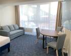 В стоимость проживания входит завтрак. Так же на территории комплекса есть шикарный ресторан, кафе, паб и гриль-бар. Окна кафе открывают великолепный вид на озеро.