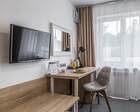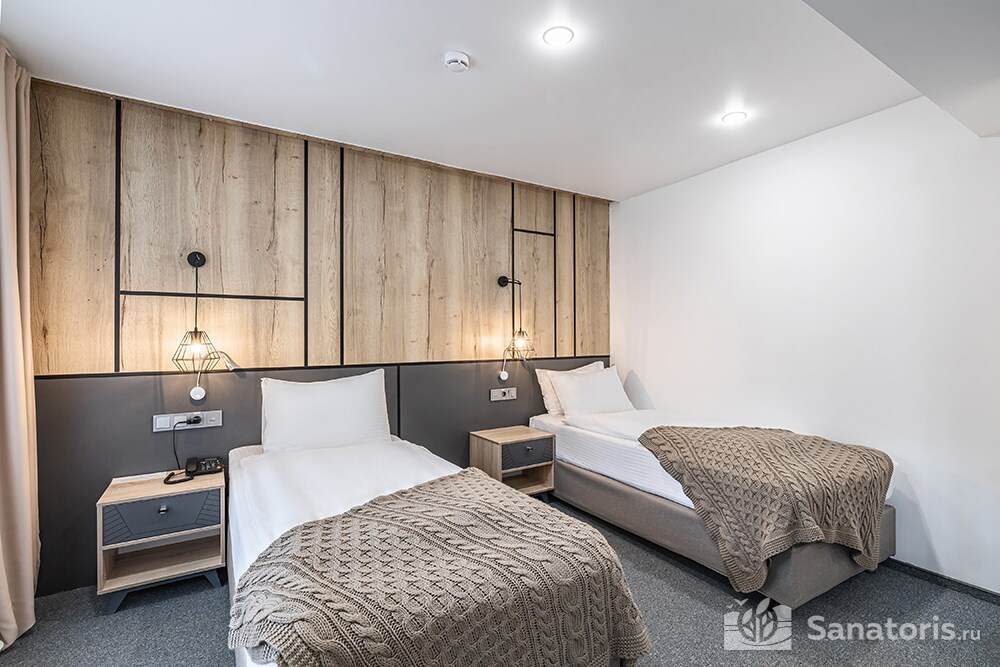 Для проживания туристов предусмотрены одноместные и двухместные апартаменты. Все они выполнены в пастельных оттенках. В апартаментах есть спутниковое телевидение, мебель, туалет, ванная комната, холодильник.