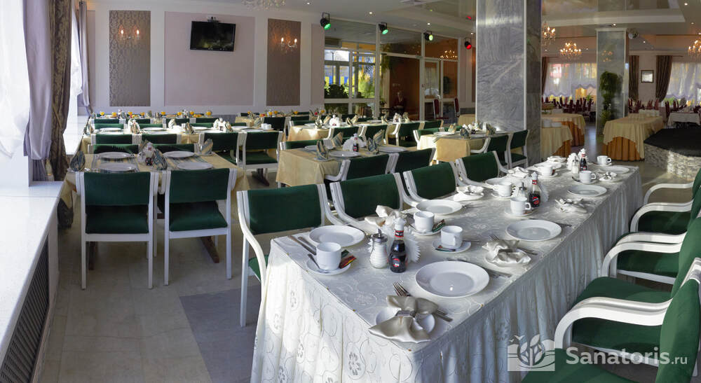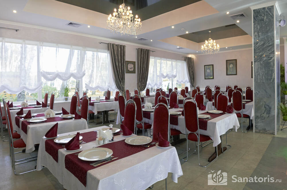 В пансионате реализуются 2 вида курсовок. Доступны путевки без лечения и курсовки с полным объемом медицинских процедур. Пребывание в пансионате без получения медицинских услуг включает проживание с завтраком. Полная стоимость курсовки включает проживание и лечение, а также 3-разовое питание.
