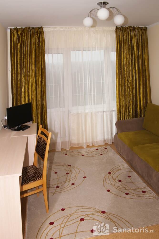 Проживание гостей осуществляется в комфортных апартаментах. В спальном корпусе есть лифт, что очень удобно для людей преклонного возраста. В номерах есть балконы, которые выходят на живописный парк и лес.