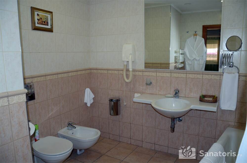 На территории пансионата есть большой бассейн с подогревом, банный центр, бильярдная комната. Постояльцам доступен зал с современными тренажерами, теннис, услуги инструктора по фитнесу.