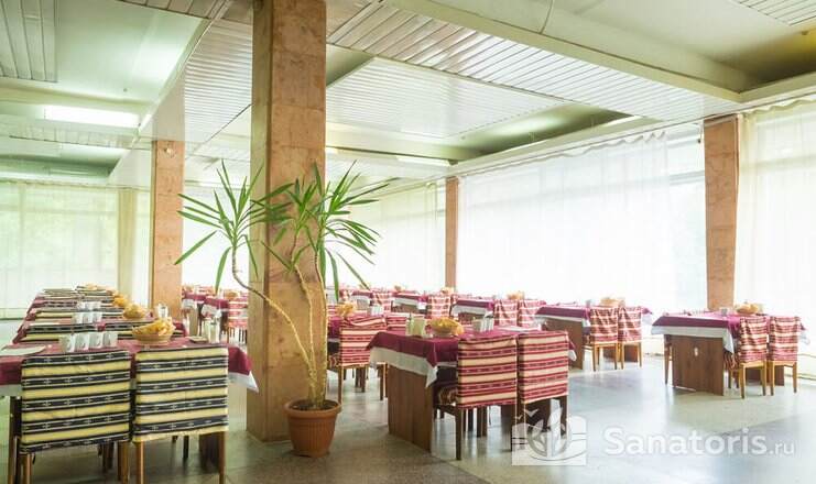 Гости здравницы обеспечиваются диетическим питанием три раза в день. Функционирует система заказа по предложенному меню.