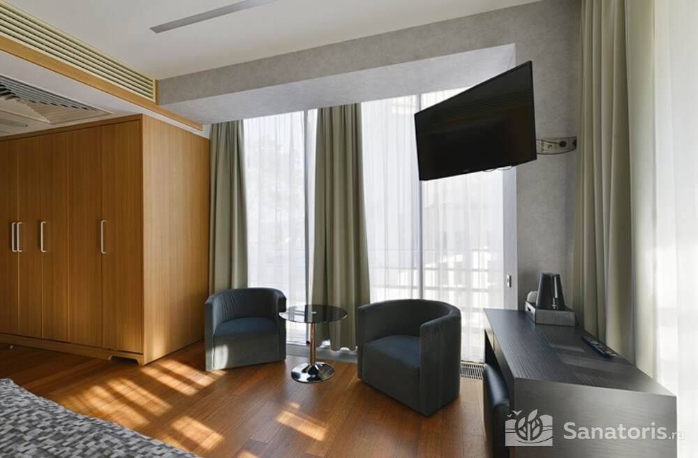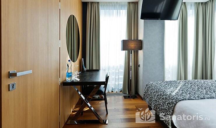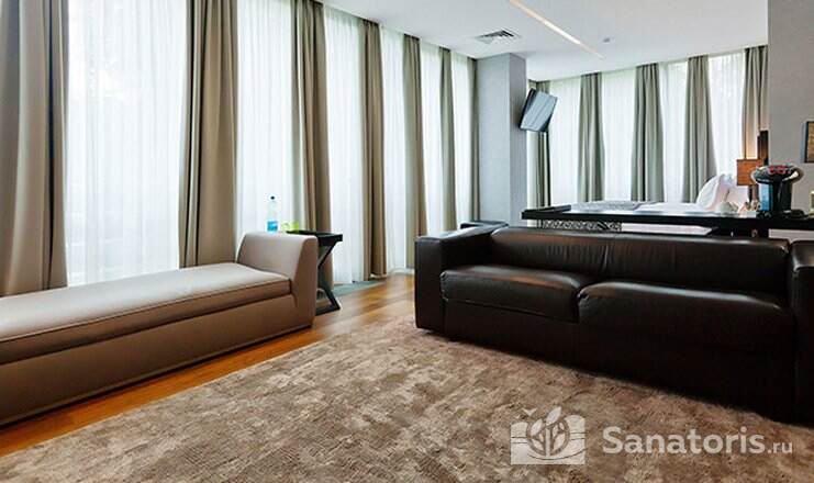 Отель расположен на территории 15 тысяч квадратных метров. Кроме отеля здесь есть новый спальный корпус, большой бассейн. Между зданиями имеются теплые переходы.