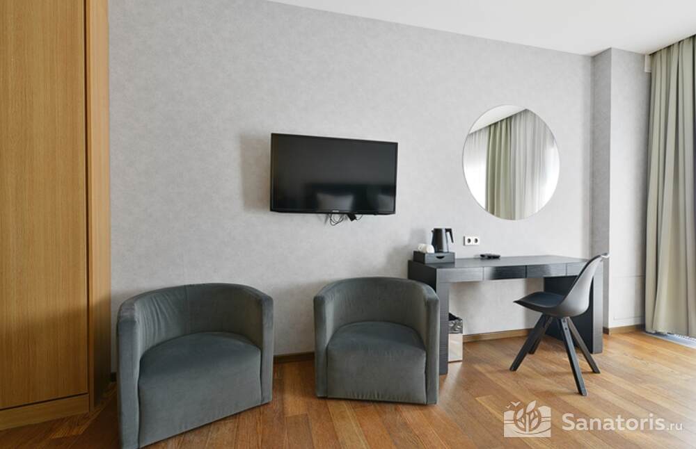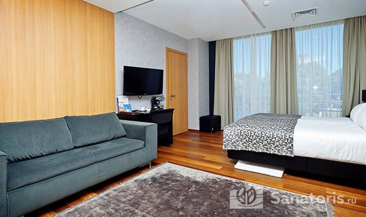 В главном корпусе есть большой бассейн с панорамными окнами, которые открывают великолепный вид на парковую зону. Постояльцам доступен зал с тренажерами, бассейн с подогревом, бесплатная парковка. На территории есть бесплатный доступ к Интернету.
