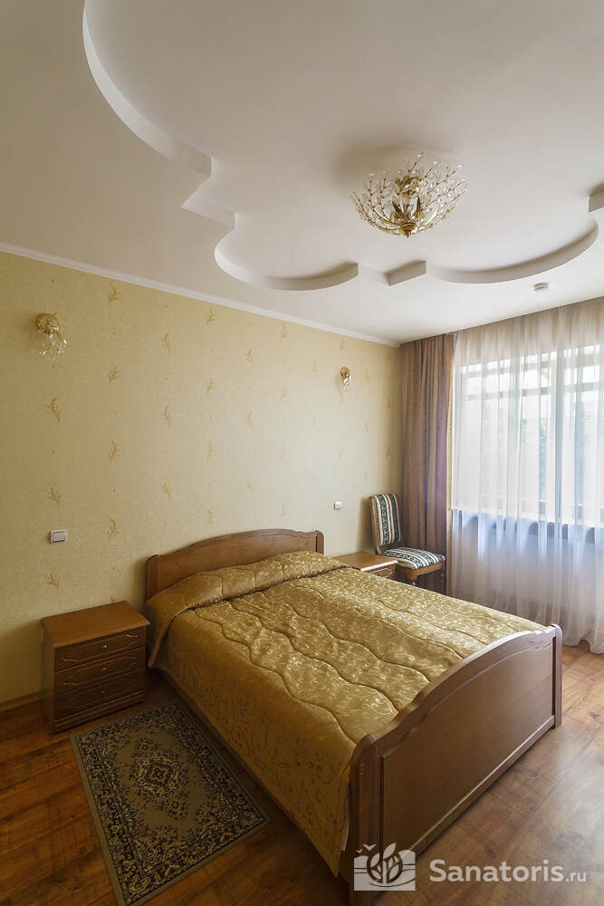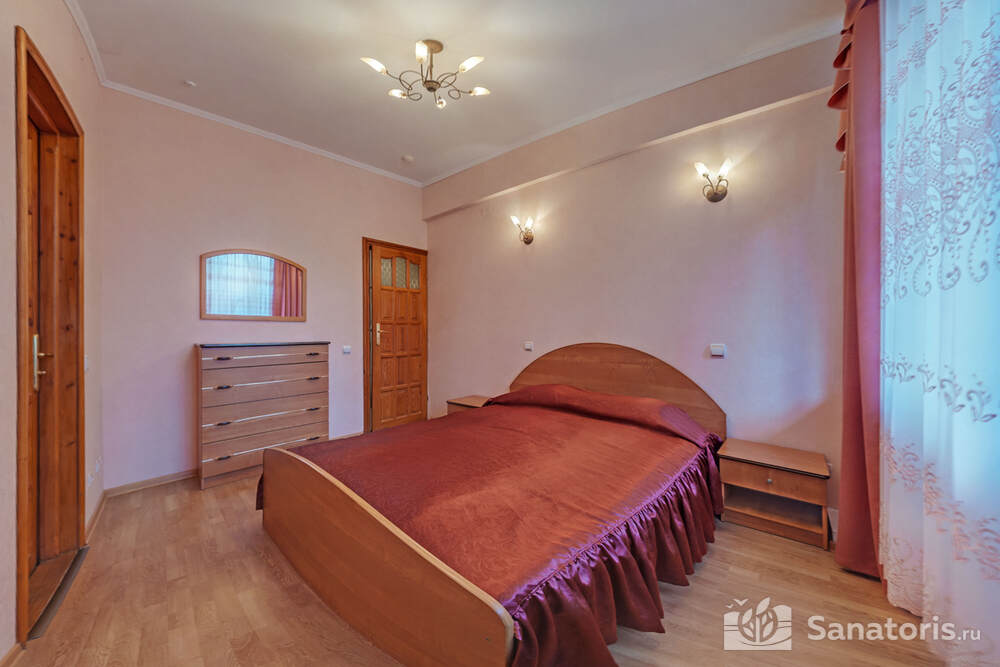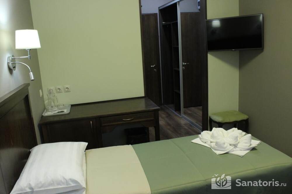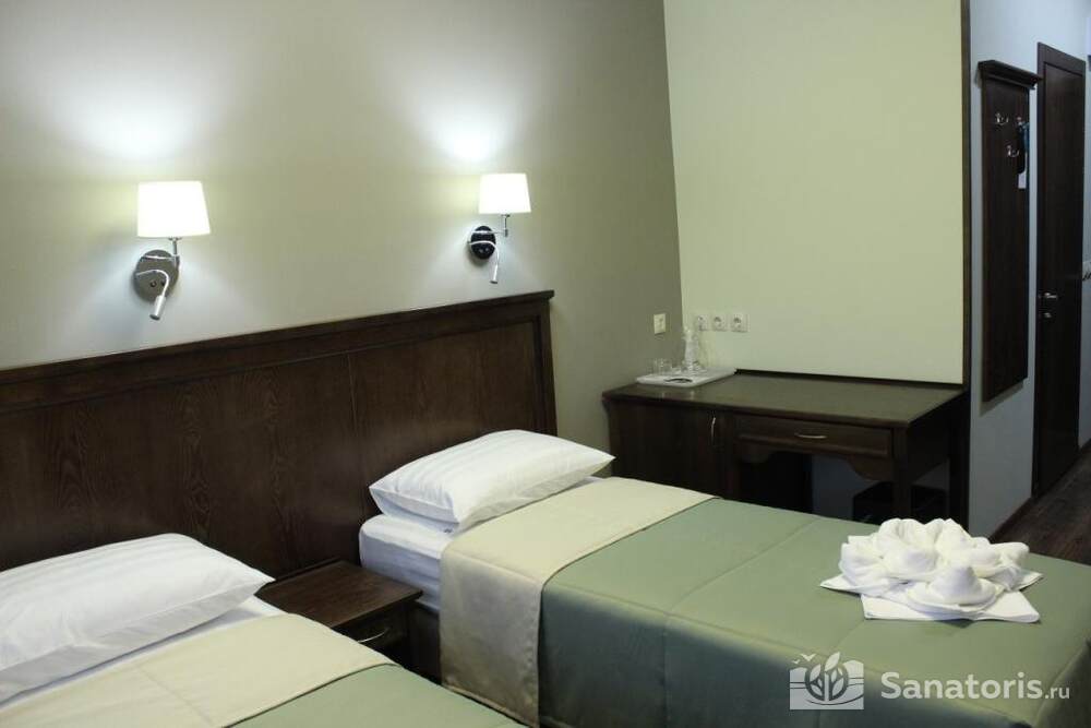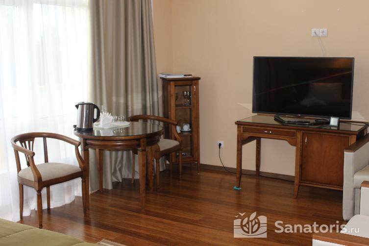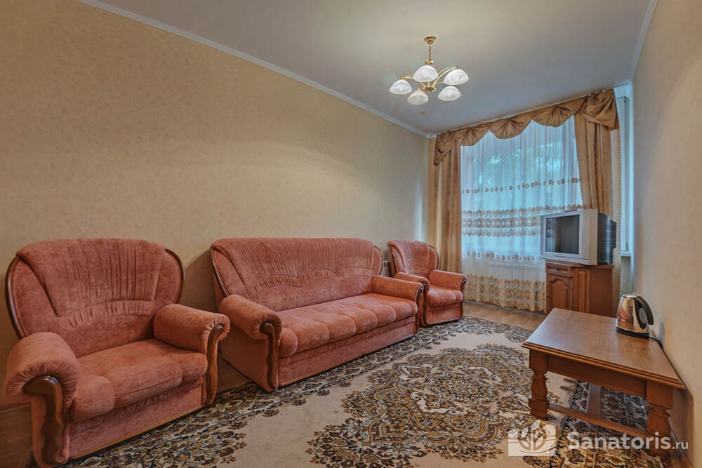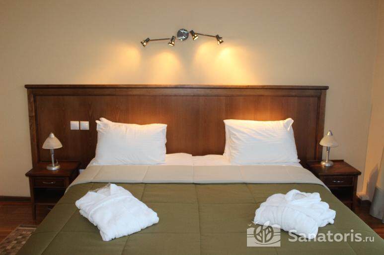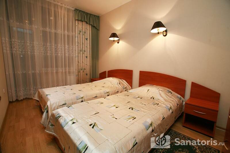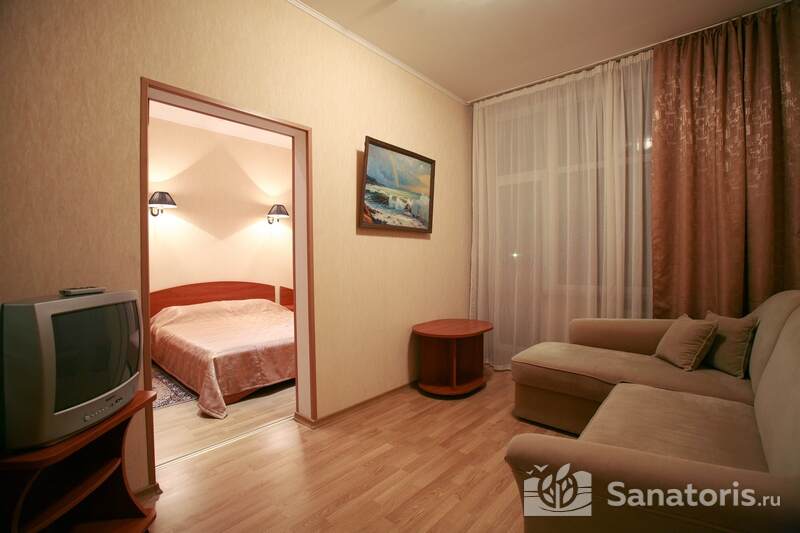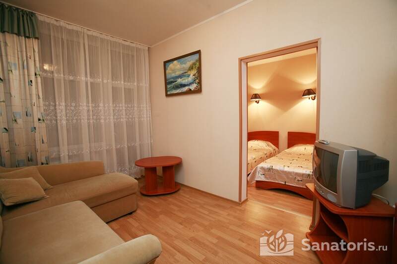 Для проживания постояльцев есть однокомнатные и двухкомнатные апартаменты. В каждом номере предусмотрена современная мебель, спутниковое телевидение, санузел, душ, холодильник. Администрация санатория предоставляет гостям полотенца, постельное белье и туалетные принадлежности.
