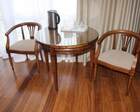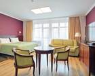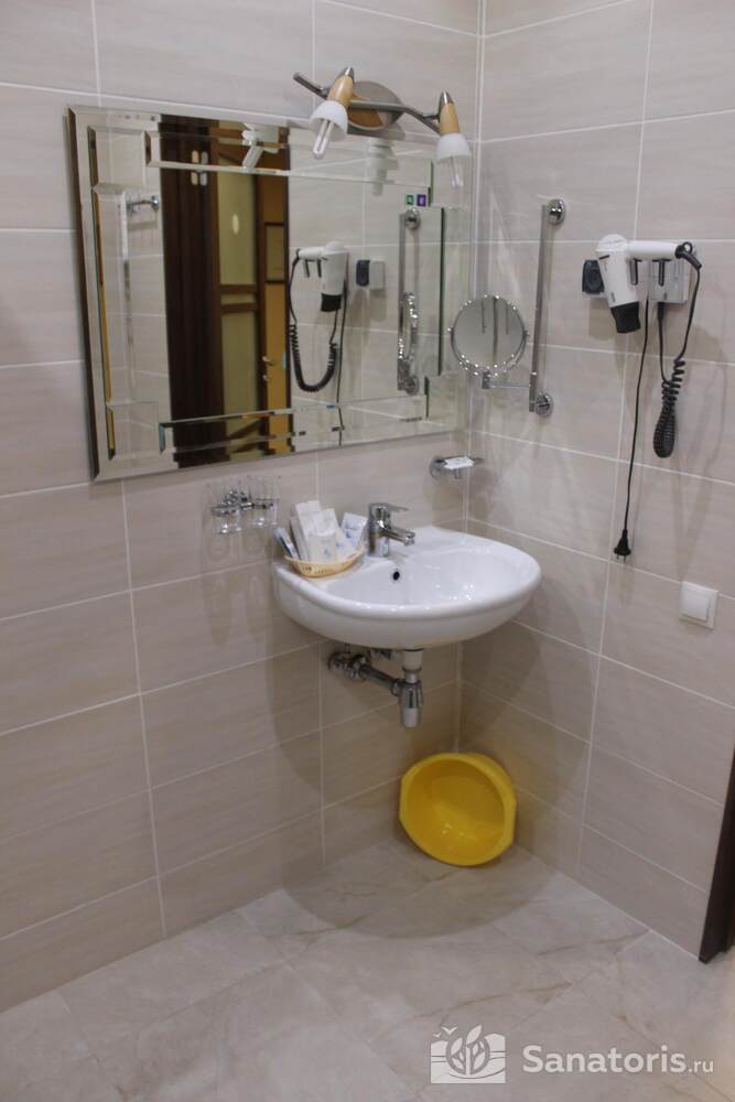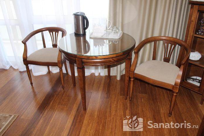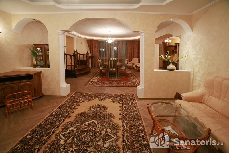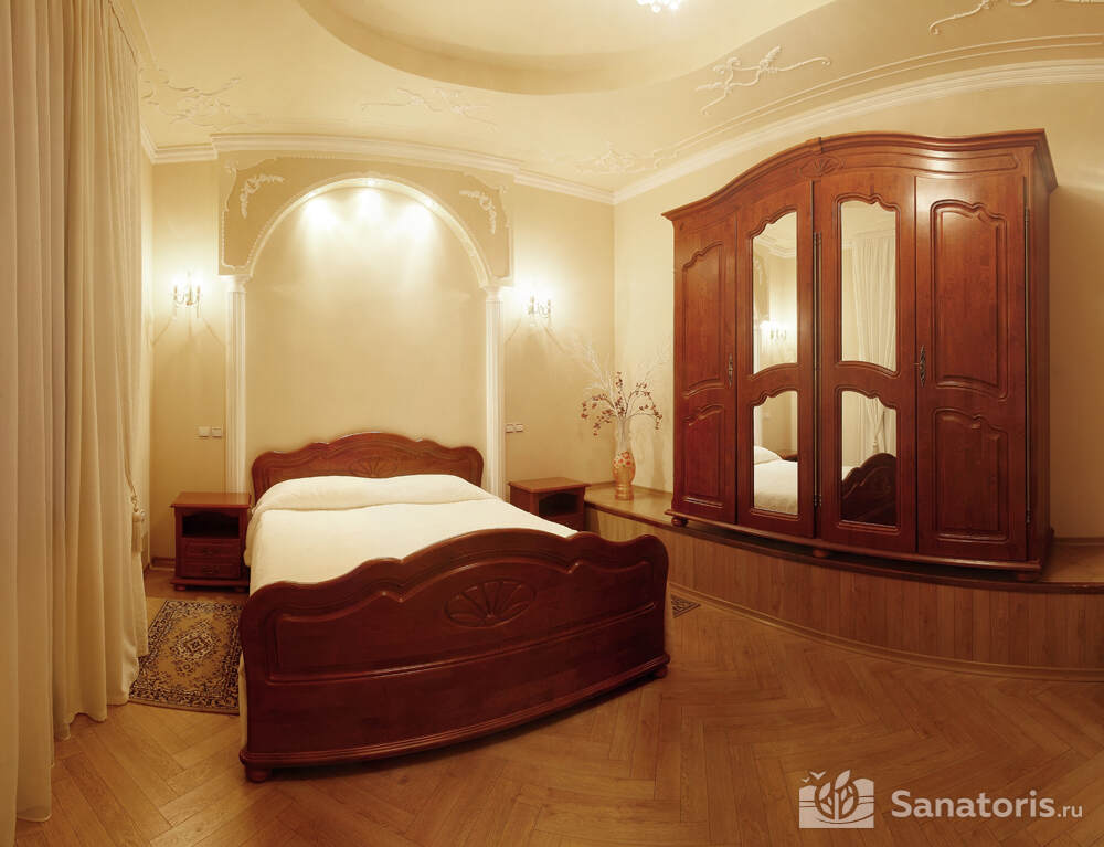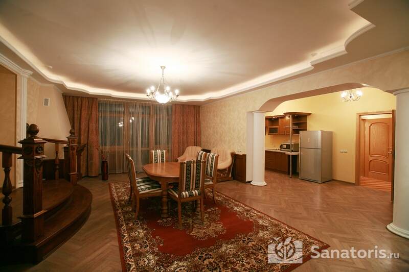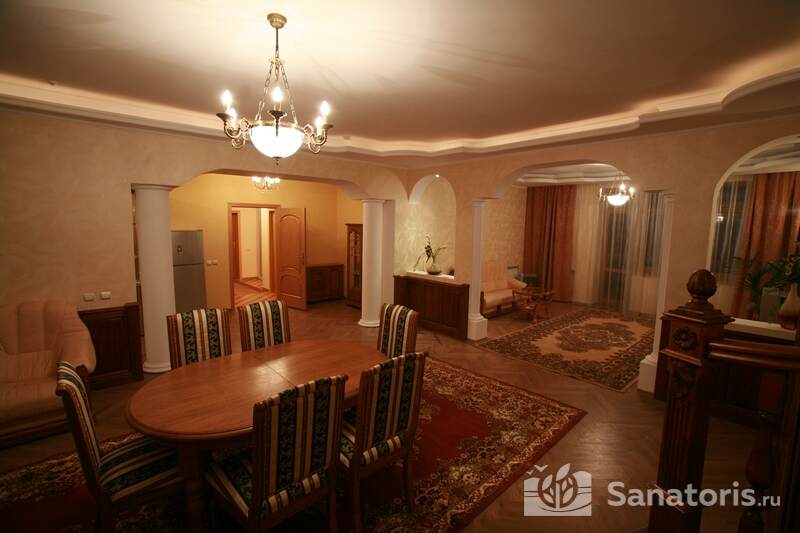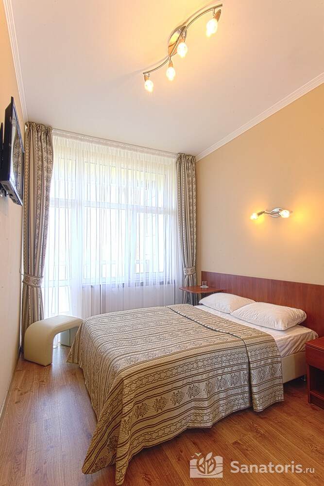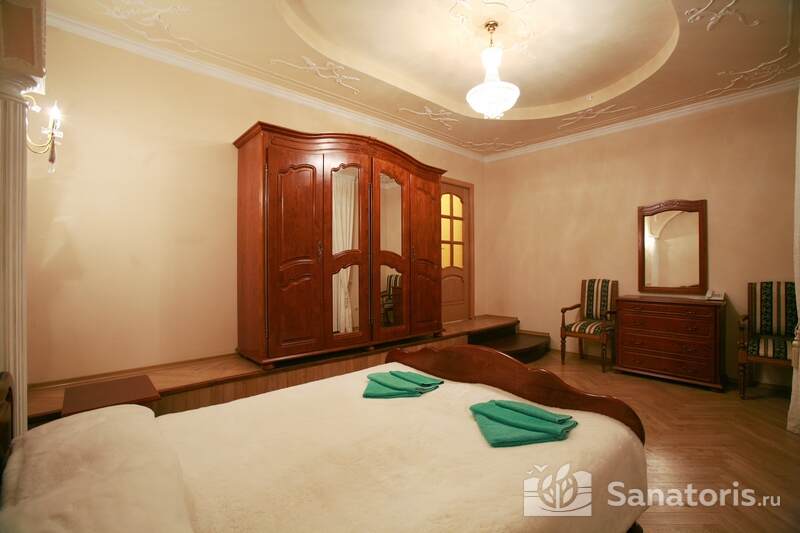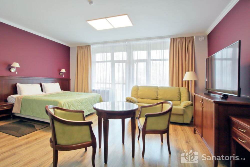 Для проживания постояльцев есть однокомнатные и двухкомнатные апартаменты. В каждом номере предусмотрена современная мебель, спутниковое телевидение, санузел, душ, холодильник. Администрация санатория предоставляет гостям полотенца, постельное белье и туалетные принадлежности.