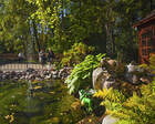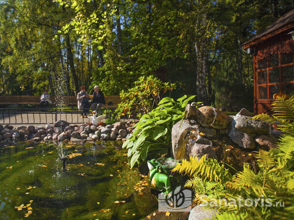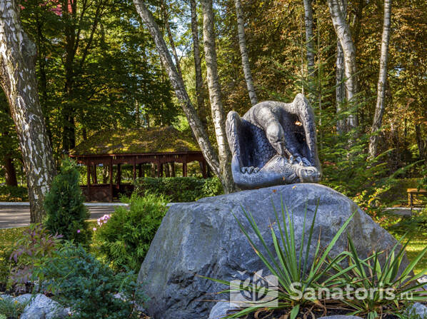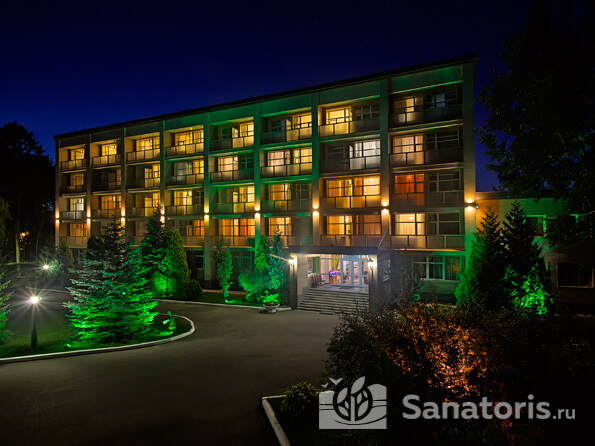 Комплекс расположен на возвышенности. На ухоженной территории произрастает много зелени. В парке есть прогулочные аллеи, уютные беседки и лавочки. Гости санатория могут вдоволь насладиться пением птиц, почувствовать умиротворение. Здравница ограждена и находится под круглосуточной охраной. Установлены камеры видеонаблюдения.