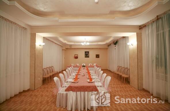 Гости санатория обеспечиваются диетическим питанием три раза в день. Столовая функционирует по системе заказного меню и шведского стола. Предоставляется несколько уникальных диет, которые помогут наладить работу всего организма. Подбором нужной диеты занимается опытный специалист.