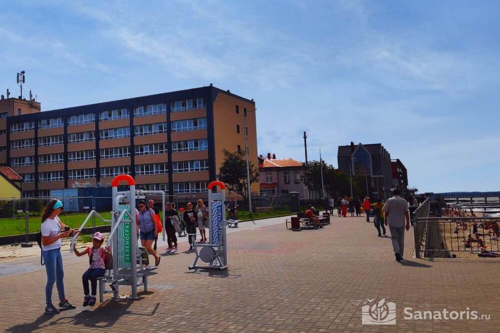 Популярный оздоровительный центр располагается в центре города Зеленоградска. Его уже давно прозвали городом-курортом. В 25 метрах расположено морское побережье. Главная достопримечательность санатория, это роскошный парк, созданный для прогулок.