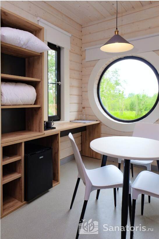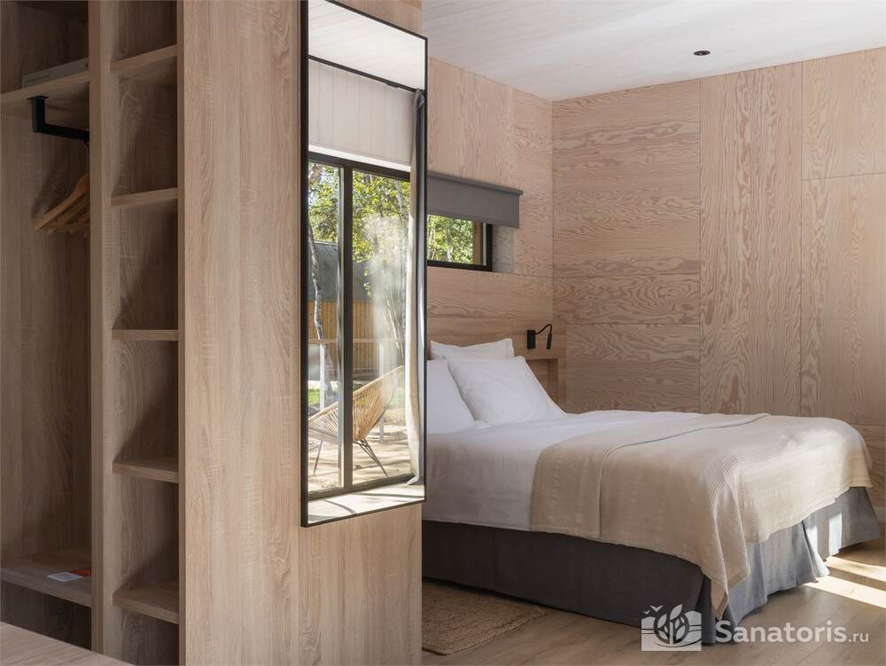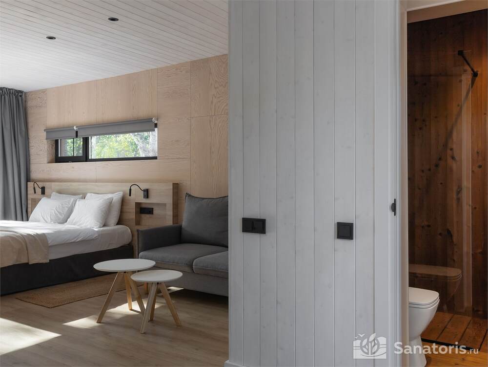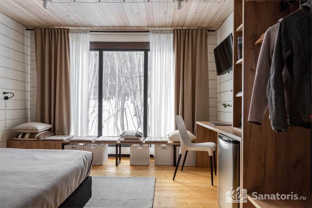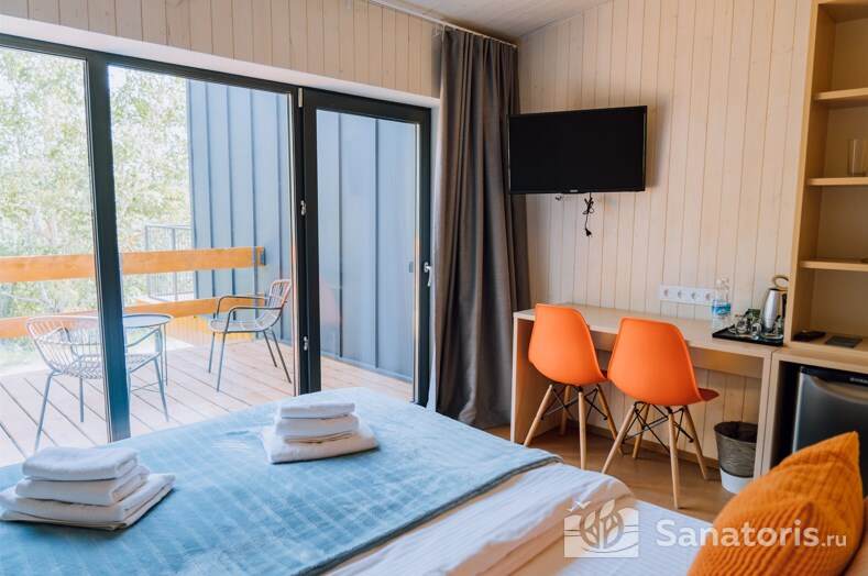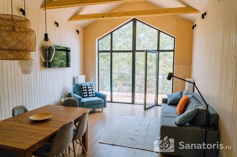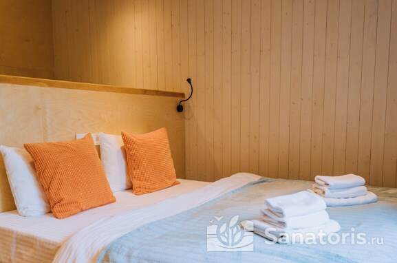 Для проживания гостей предусмотрены апартаменты, выполненные в классическом стиле. Есть разные категории номеров. Если арендовать роскошный vip-номер, то сквозь панорамные окна можно любоваться озером.
