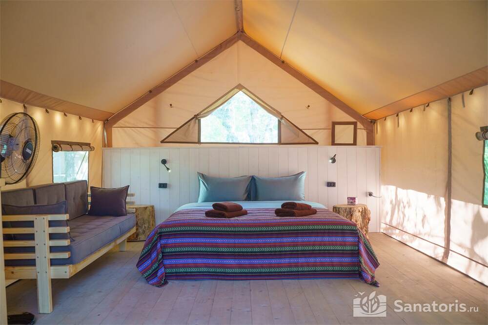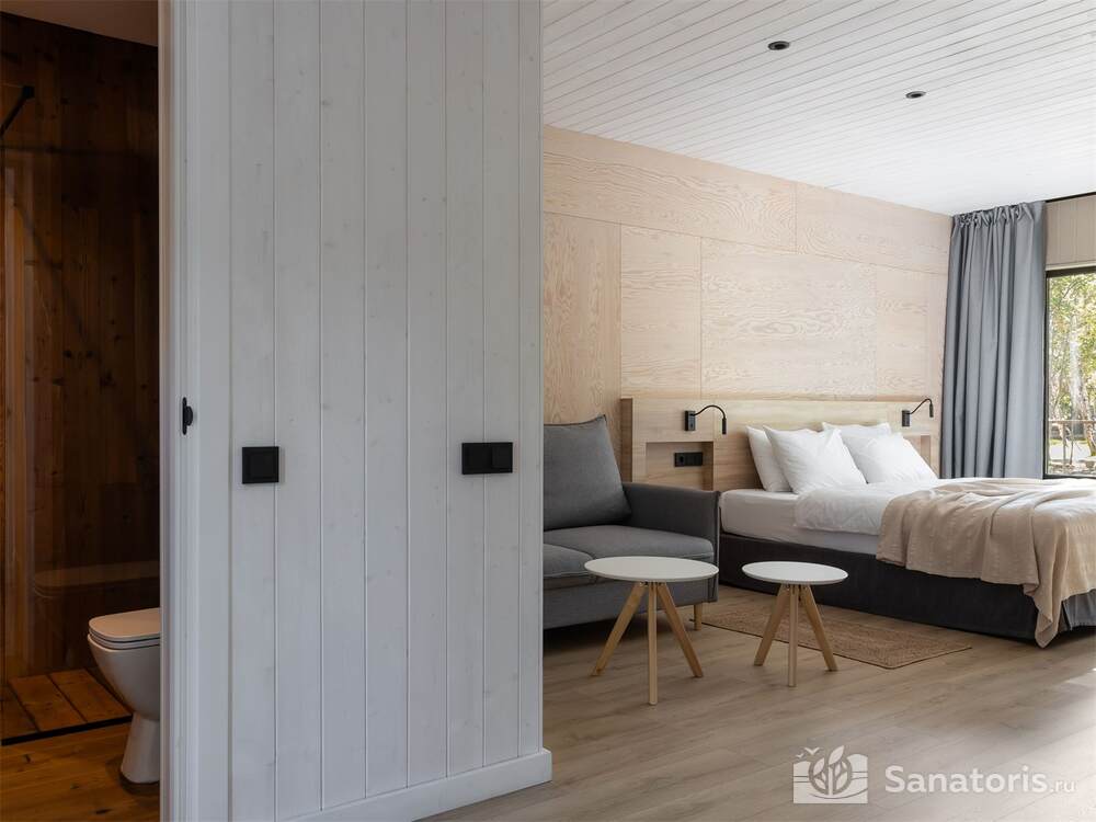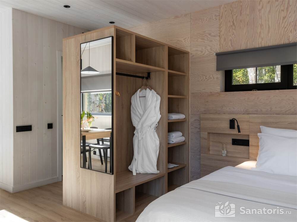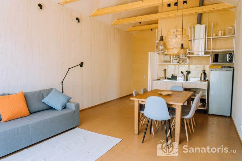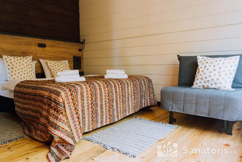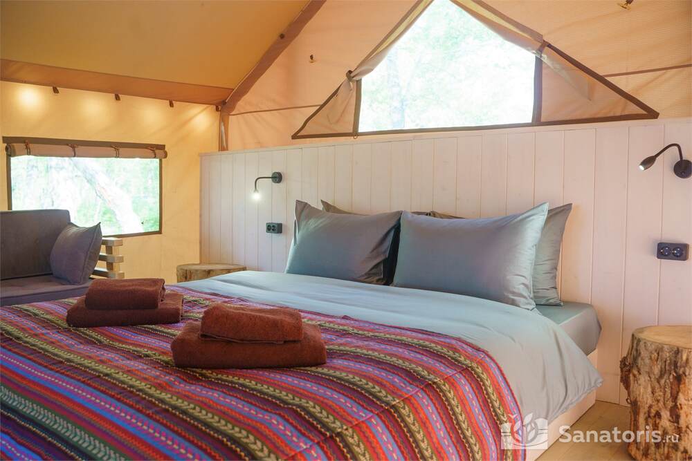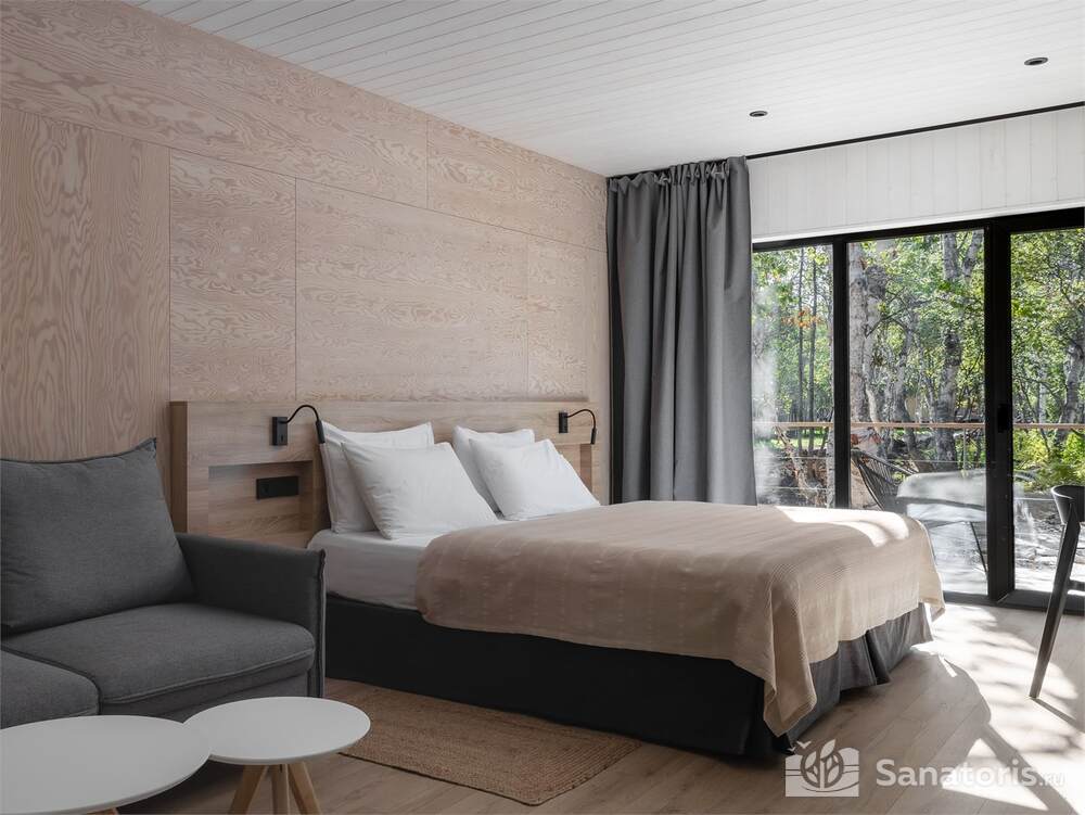 Для проживания гостей предусмотрены апартаменты, выполненные в классическом стиле. Есть разные категории номеров. Если арендовать роскошный vip-номер, то сквозь панорамные окна можно любоваться озером.