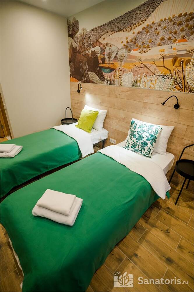 В каждом номере есть качественная мебель, необходимая техника, санузел, ванная комната. Эконом номера предусматривают использование удобств на этаже. Постояльцам предоставляют полотенца, постельное белье, банные халаты, тапочки и косметические принадлежности.