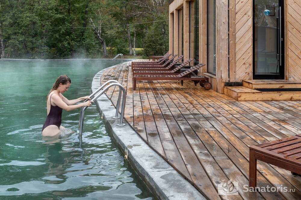 На территории оздоровительного комплекса есть собственный аквапарк. Здесь работает три бассейна. Одни из них содержит термальную воду. Гости смогут приятно отдохнуть, расслабиться и получить массу положительных эмоций!