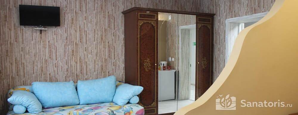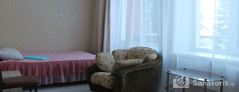 Жилой комплекс здравницы представлен четырьмя этажами. Первый из них включает в себя все лечебные кабинеты, вместительную столовую, зал для занятий лечебной физкультурой, а также администрацию санатория. Чтобы отдыхающим было комфортно и удобно передвигаться, лечебный корпус соединен проходом с жилыми номерами.