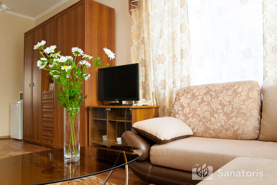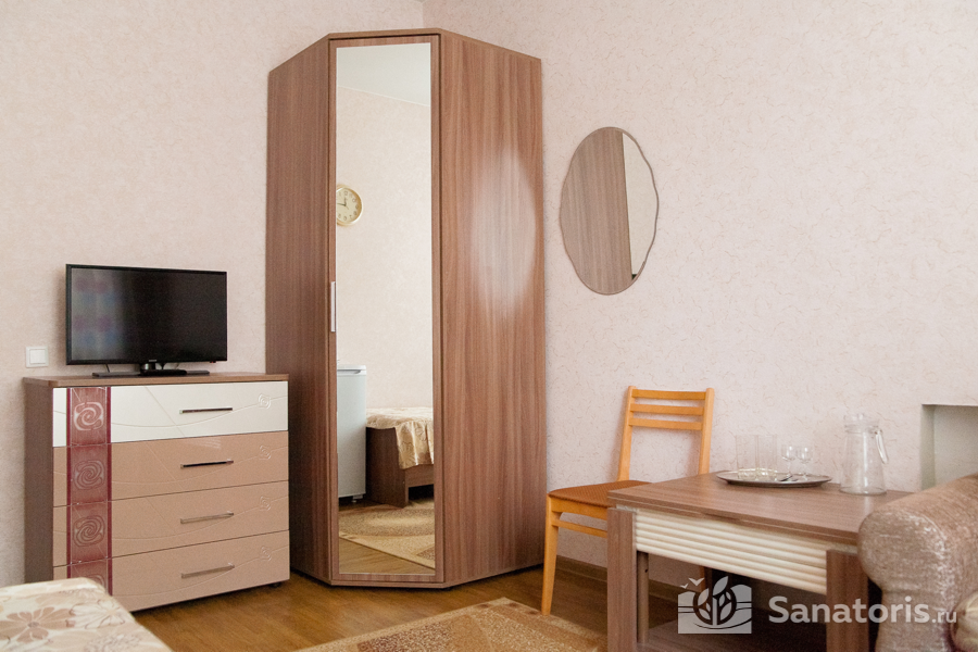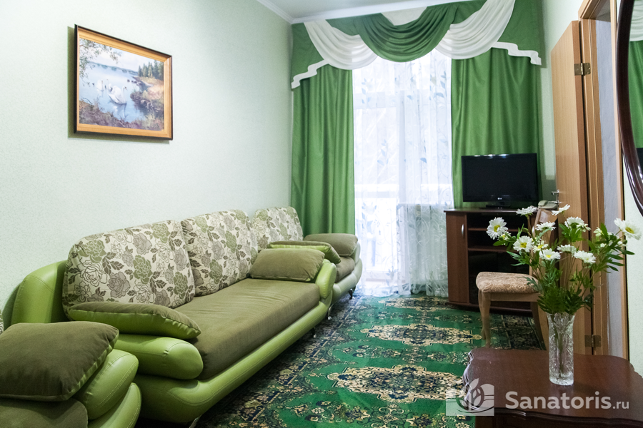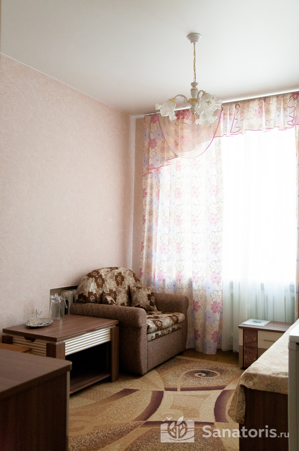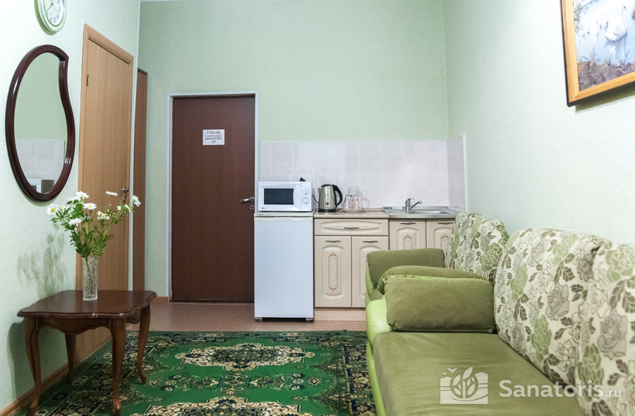 Столовая находится в отдельном здании. Постояльцам санатория предоставляют комплексное питание 4 раза в день. Блюда подаются по меню. При необходимости предоставляется диетическое меню.