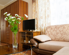 Недостатком гости считают немного устаревшую обстановку в апартаментах. Приехать на отдых можно с семьей, друзьями или коллегами. Есть варианты размещения на выходные дни.