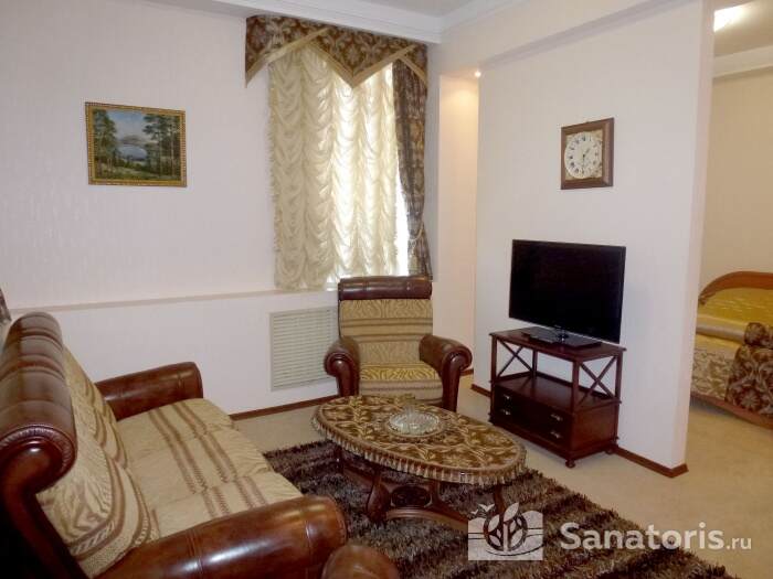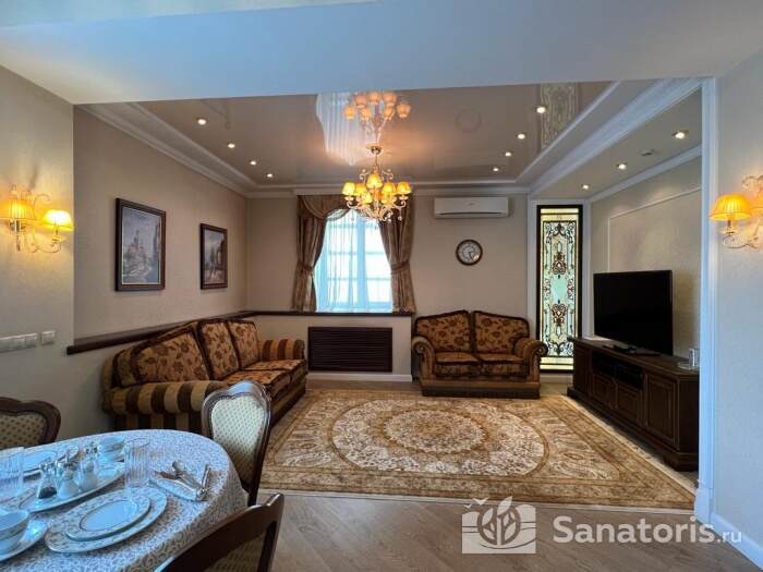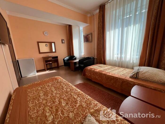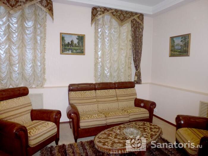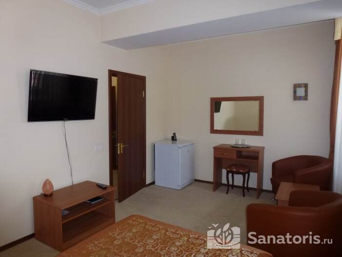 Пансионат оснащен современным медицинским оборудованием для выполнения диагностики и лечения пациентов с разными заболеваниями. Здоровьем гостей занимаются квалифицированные доктора и другой медицинский персонал. Есть кабинет ультразвуковых исследований, несколько лабораторных, процедурные комнаты. Постояльцам предлагают такой перечень оздоровительных процедур: