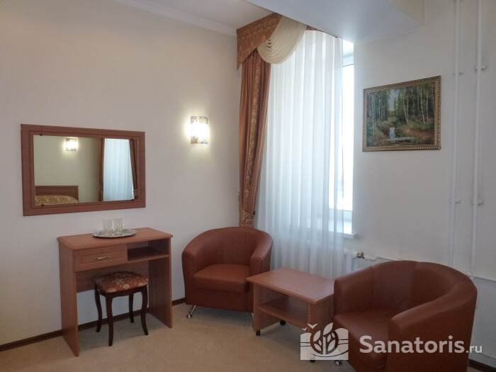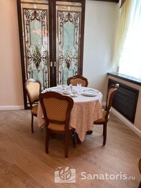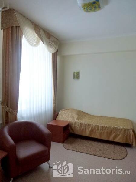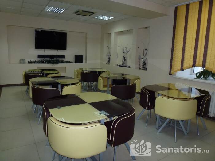 При покупке путевки для лечения пациенты обеспечиваются комплексным питанием 5 раз в сутки. При необходимости организовывается диетическое меню. Данным вопросом занимаются квалифицированные диетологи санатория. Можно заказать размещение, где будет включен только завтрак. В коридорах есть кулеры.