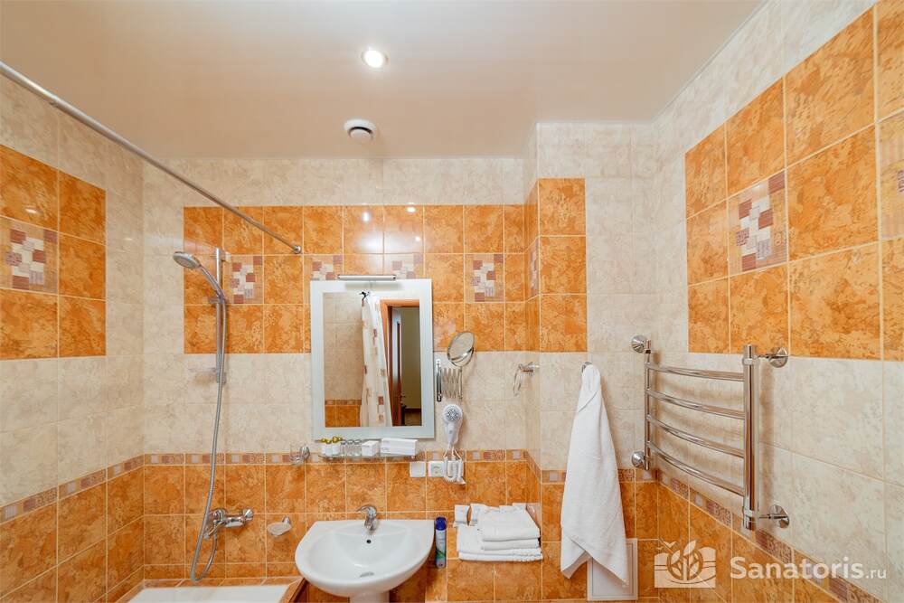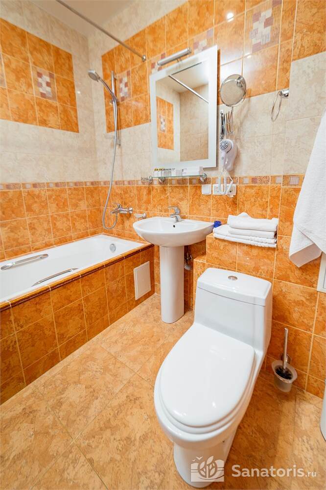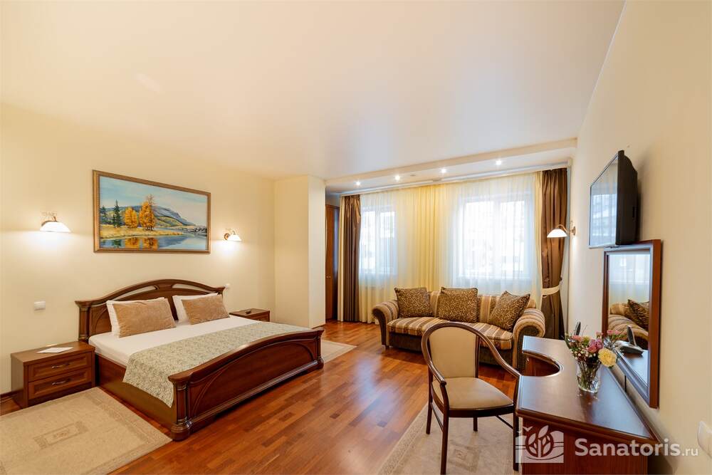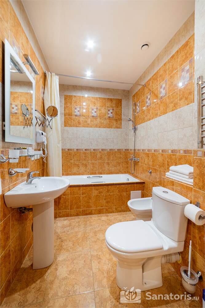 Пятиэтажный жилой корпус находится в северной части поселка. Одновременно здесь могут проживать 82 гостя. Есть номера разной вместительности и комфорта. В каждом из них есть санузел, ванная комната, спутниковое телевидение, современная мебель, электрический чайник.