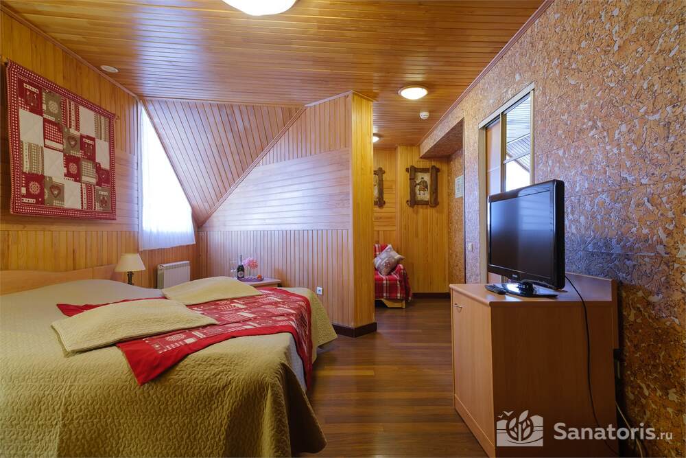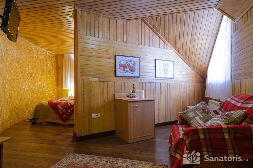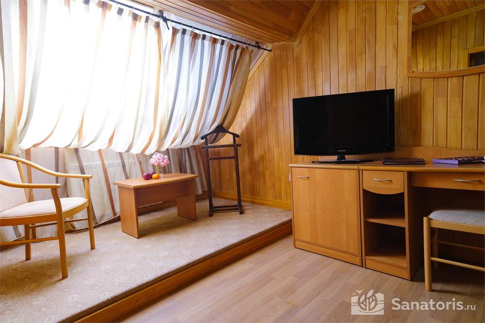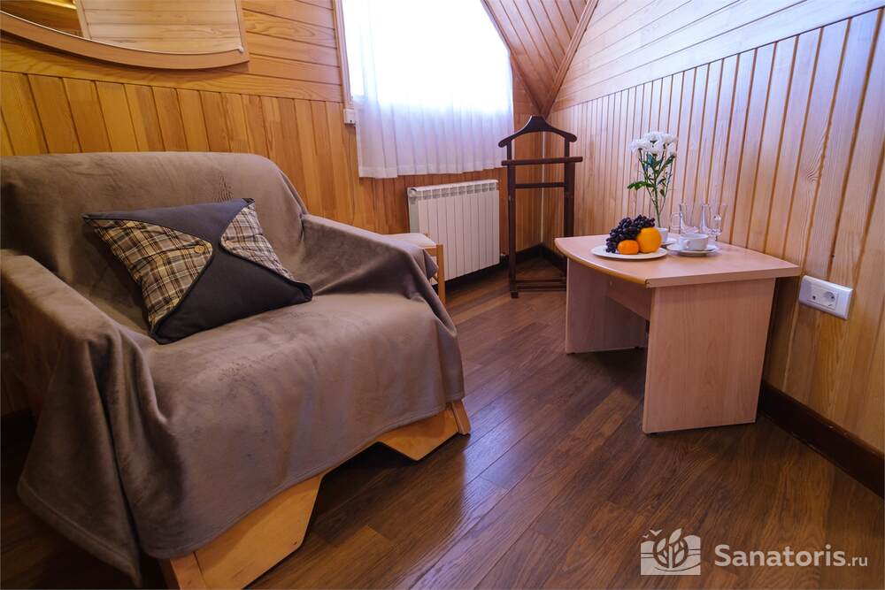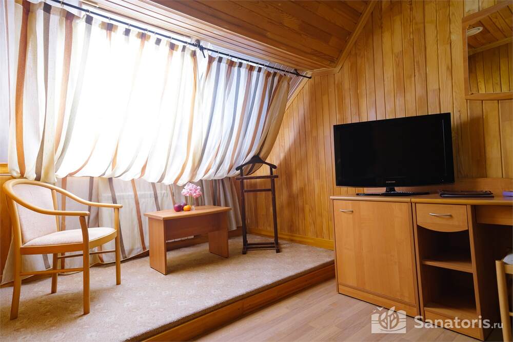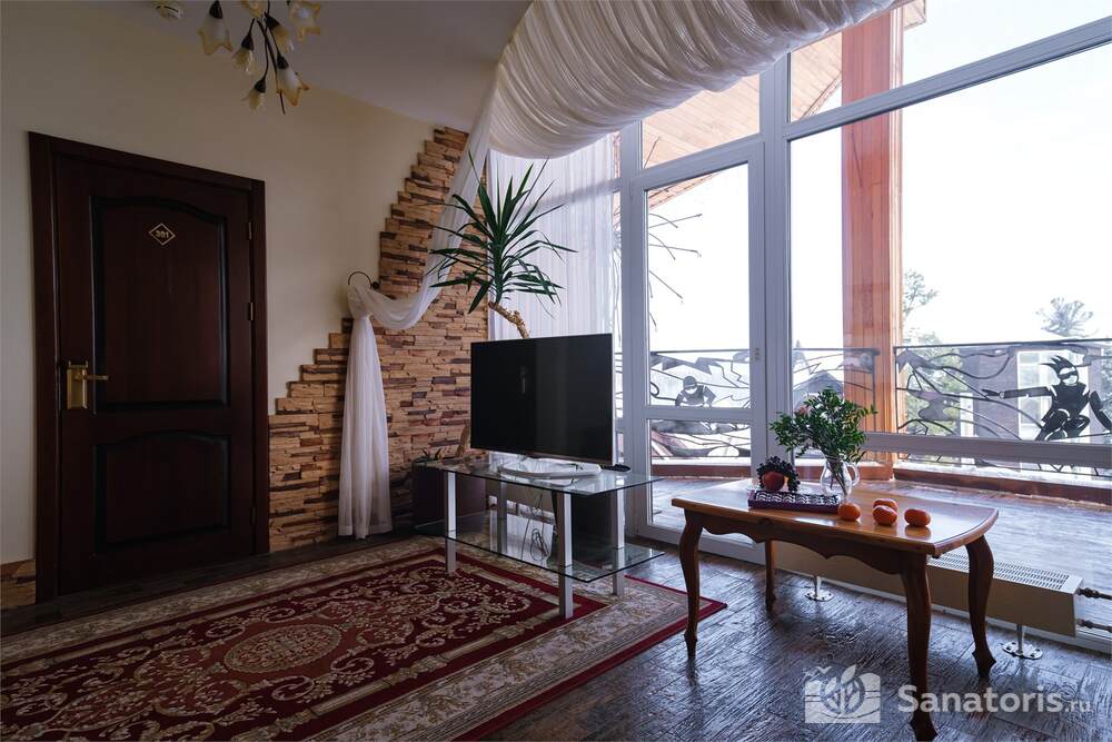Из окон номеров гости могут любоваться горами и хвойным лесом.