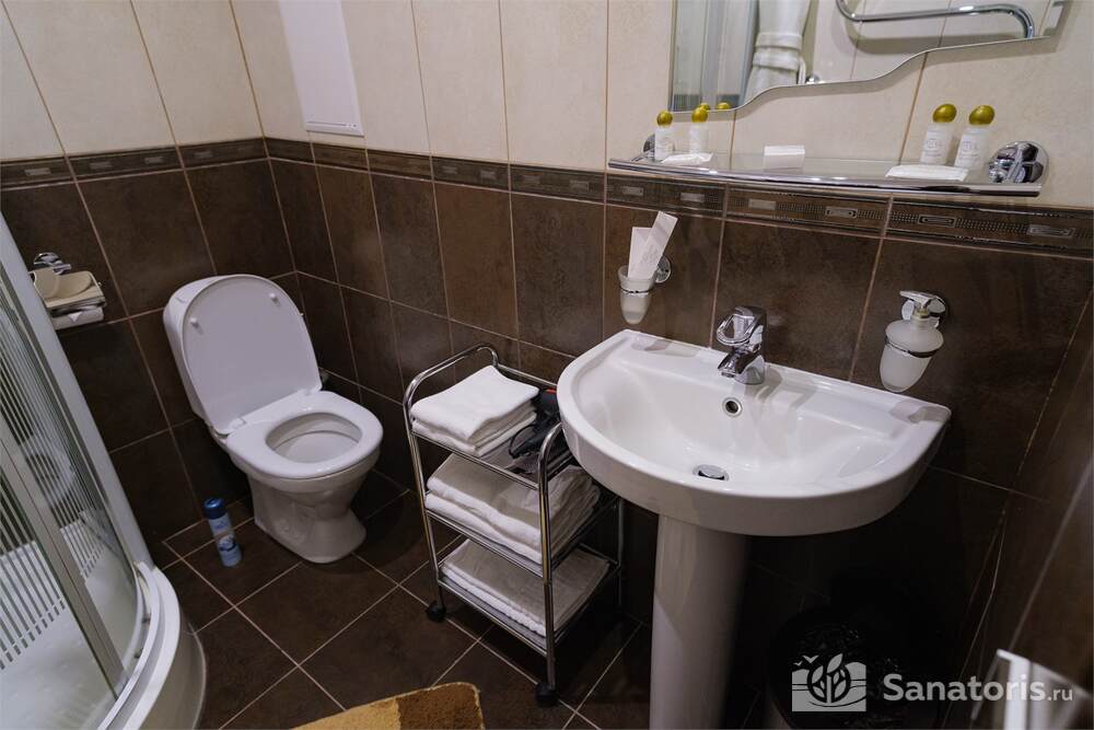 В каждом номере есть индивидуальный санузел и ванная комната. Гостям предоставляются банные халаты, комнатные тапочки, гигиенические и косметические наборы.