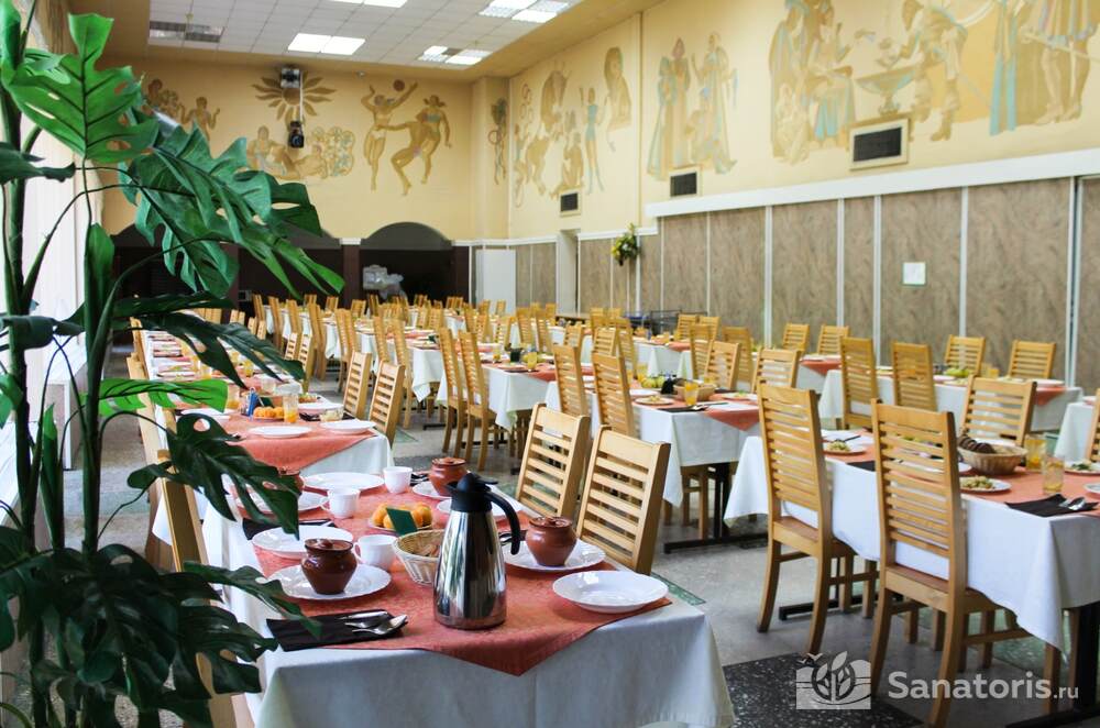 В доме отдыха гостей ждет питание 4 раза в день. Диетологи разработали различные диетические блюда. На столе всегда есть свежие фрукты, рыба, овощи и другие питательные продукты.