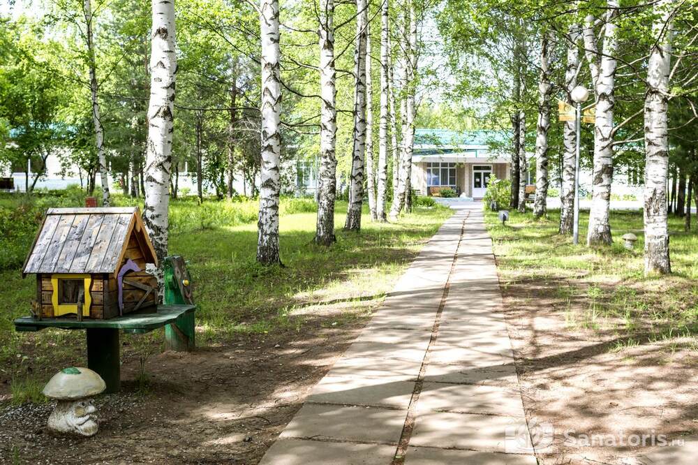 Основная часть здравницы заполнена экологической зоной лесопарка. Рядом протекает тихая речка Ивкинка. На территории есть собственные участки, с небольшими тропами для прогулок. Чуть вдали виднеется пляжная зона.