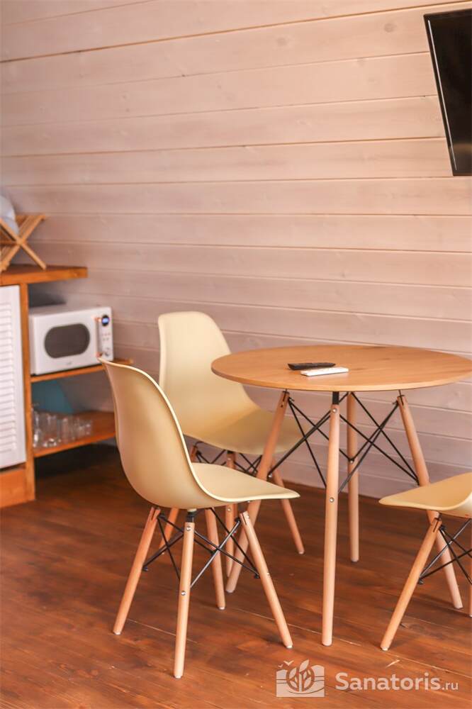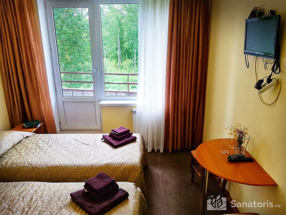 Для проживания гостей предусмотрено два комфортабельных жилых корпуса. Они расположены в 35 метрах один от другого. Недавно здесь сделали современный ремонт, который очень радует глаза постояльцев. В номерах есть все необходимое для комфортного проживания и беззаботного отдыха. Панорамные окна санатория выходят на живописную реку, открывают зелень великолепного леса.