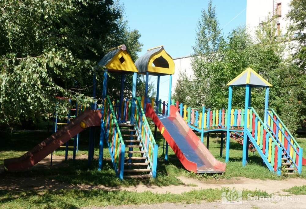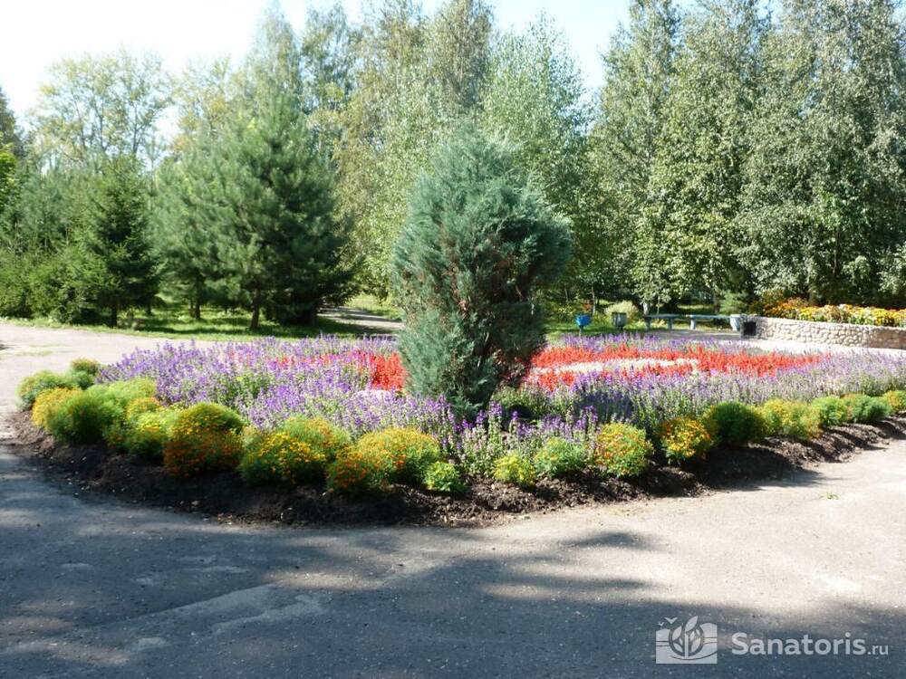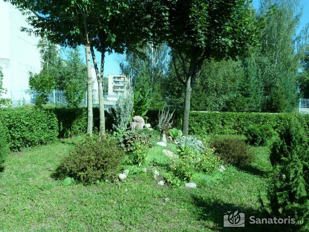 Здравница занимает обширную территорию площадью свыше 2 гектаров. На благоустроенном участке, помимо здания санатория, расположены детская площадка, оборудованная горками, качелями, каруселями, песочницами. По всей территории разбиты клумбы и цветники, установлены удобные скамейки и оригинальные скульптуры