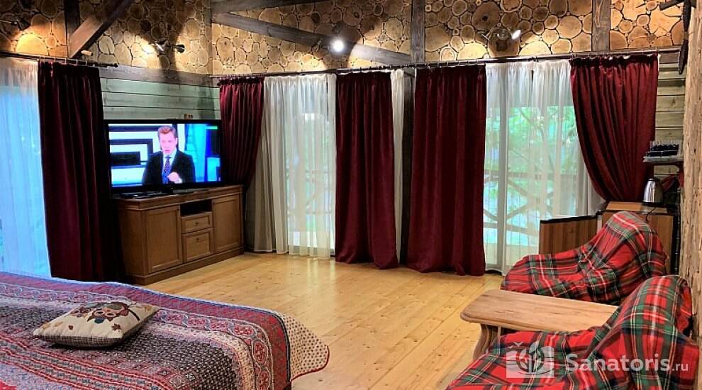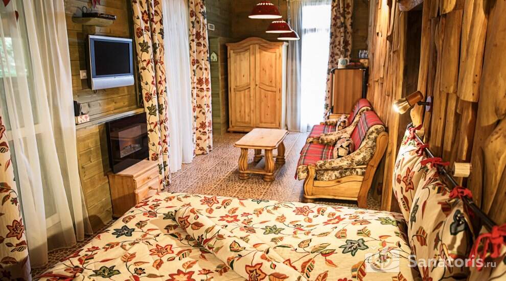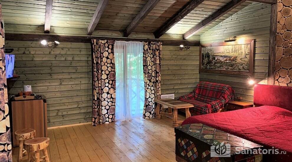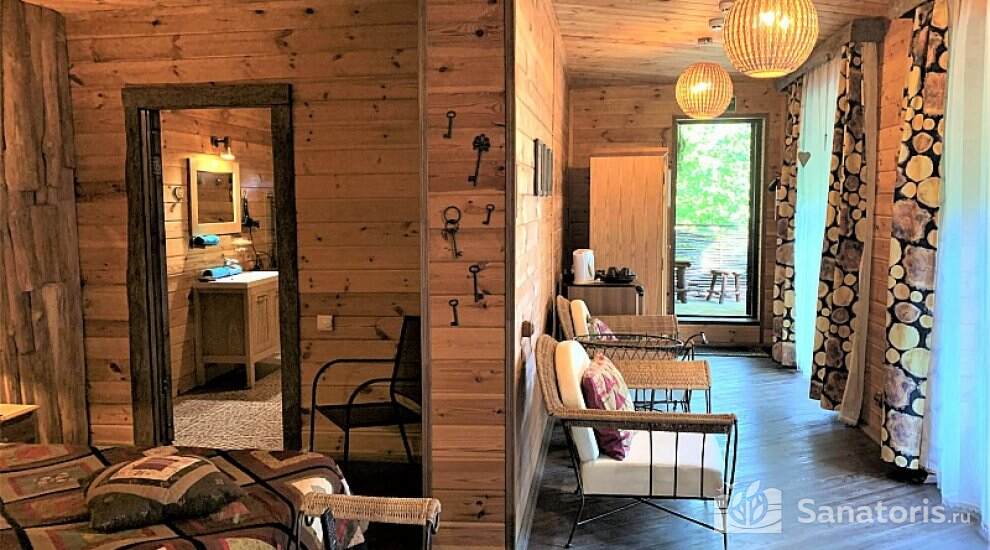 В каждом коттедже предусмотрены комфортабельные апартаменты. На этаже не более 2 номеров. Есть одноэтажные, двухэтажные и трехэтажные коттеджи. Окна номеров открывают удивительные пейзажи. Территория комплекса утопает в зелени. Гости смогут насладиться тишиной леса, пением птиц и кристально чистым воздухом.