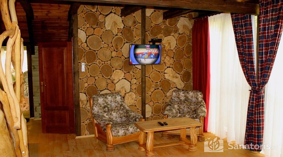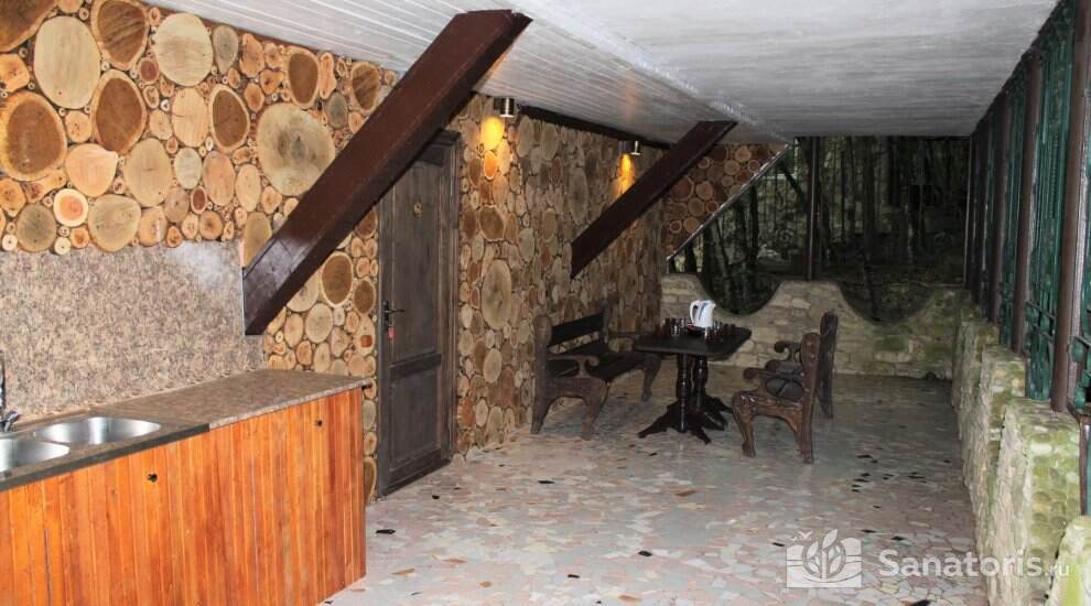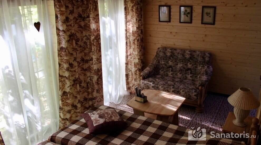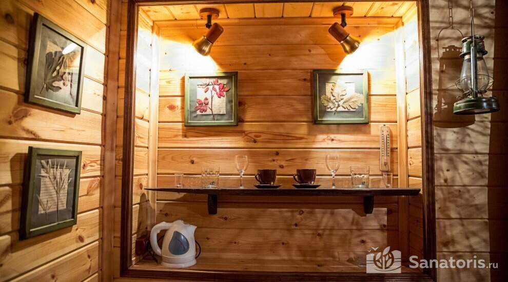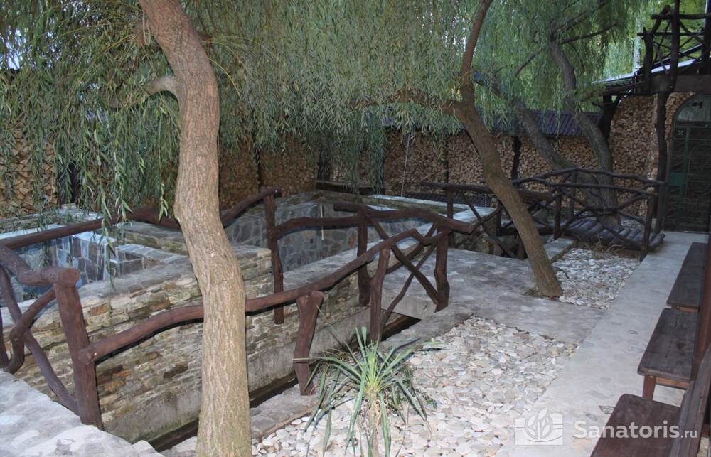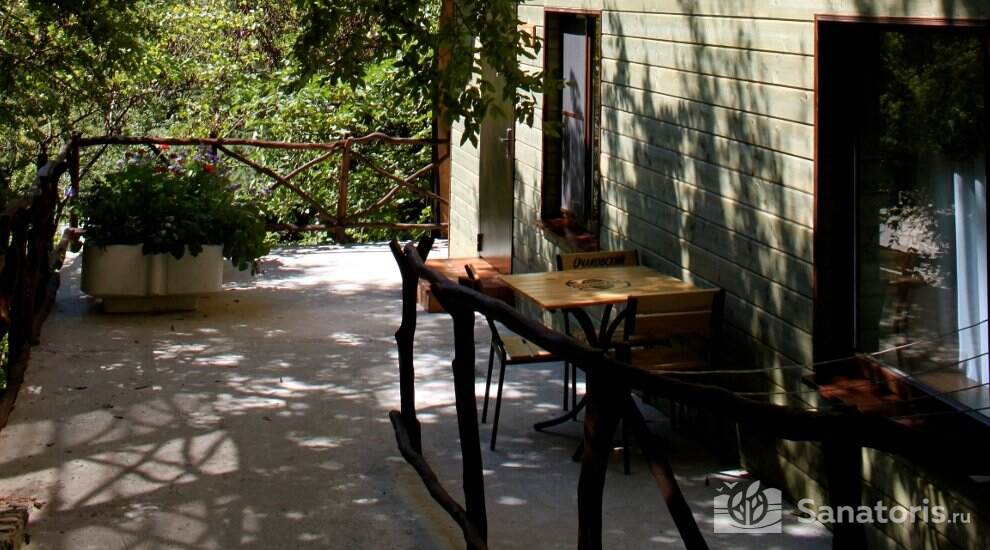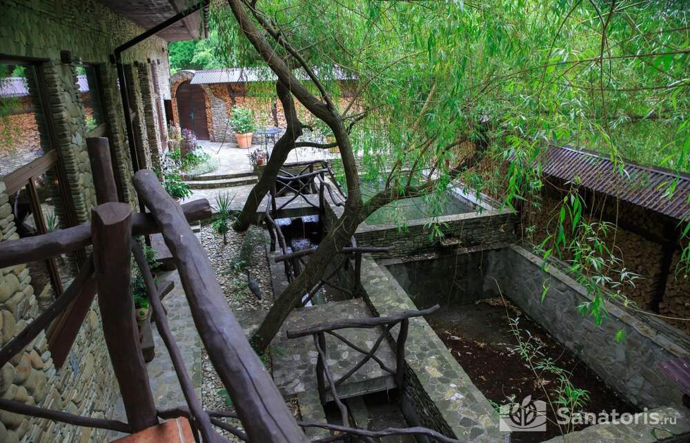 Возле коттеджей оборудованы прогулочные аллеи ил природного камня. Постояльцам в номера подается минеральная вода с горной скважины. Она обладает целебными свойствами, поэтому ее часто называют живой. Приехать на отдых и оздоровление можно в любое время года.
