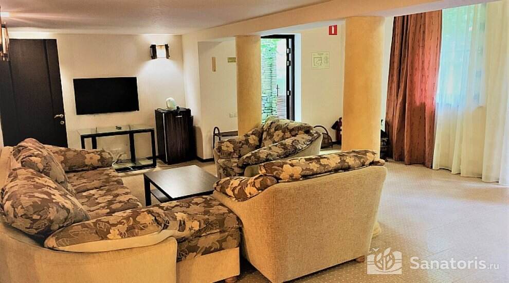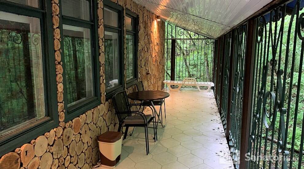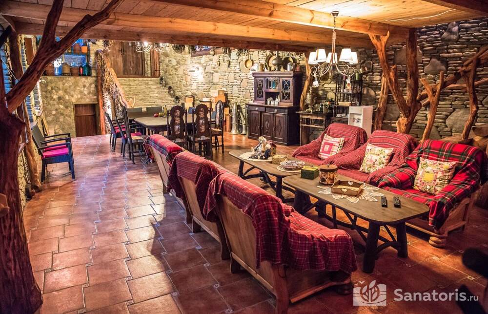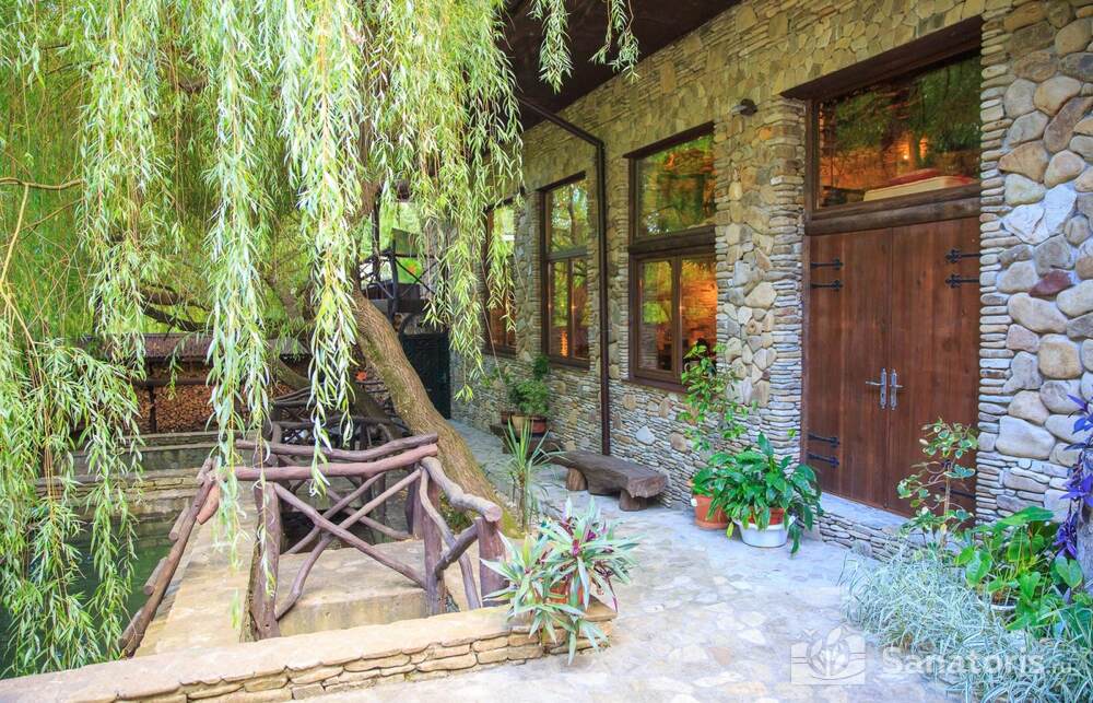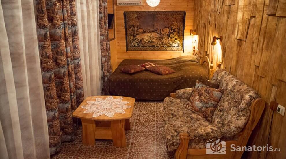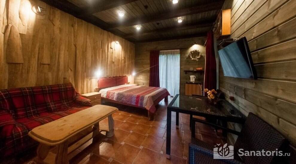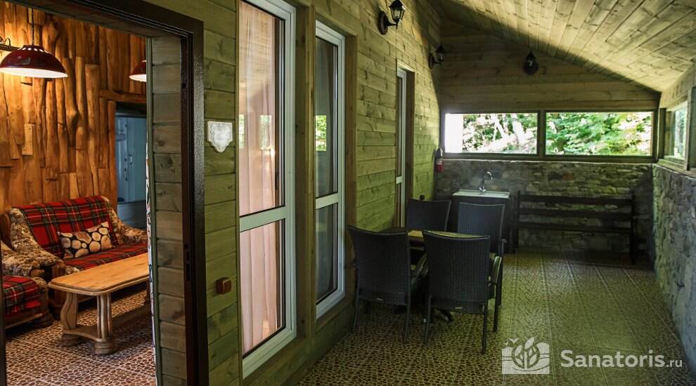Возле коттеджей оборудованы прогулочные аллеи ил природного камня. Постояльцам в номера подается минеральная вода с горной скважины. Она обладает целебными свойствами, поэтому ее часто называют живой. Приехать на отдых и оздоровление можно в любое время года.