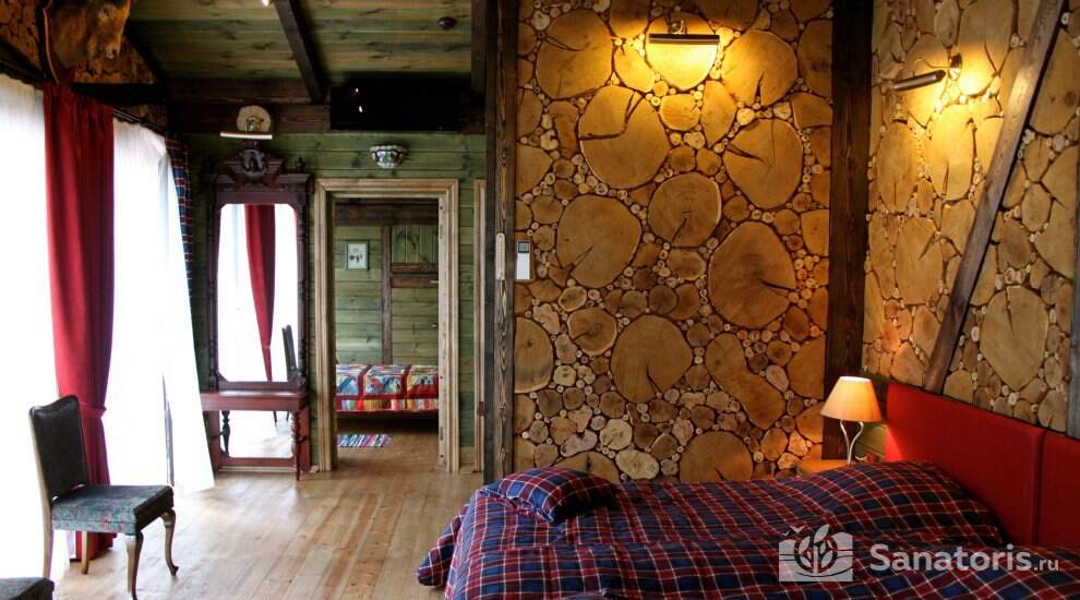 Все апартаменты выполнены с учетом экологических требований. Отделка выполнена из натурального дерева местных лесов. Защиту натурального материала обеспечивает минеральный раствор. В интерьерах номеров есть антикварные предметы.