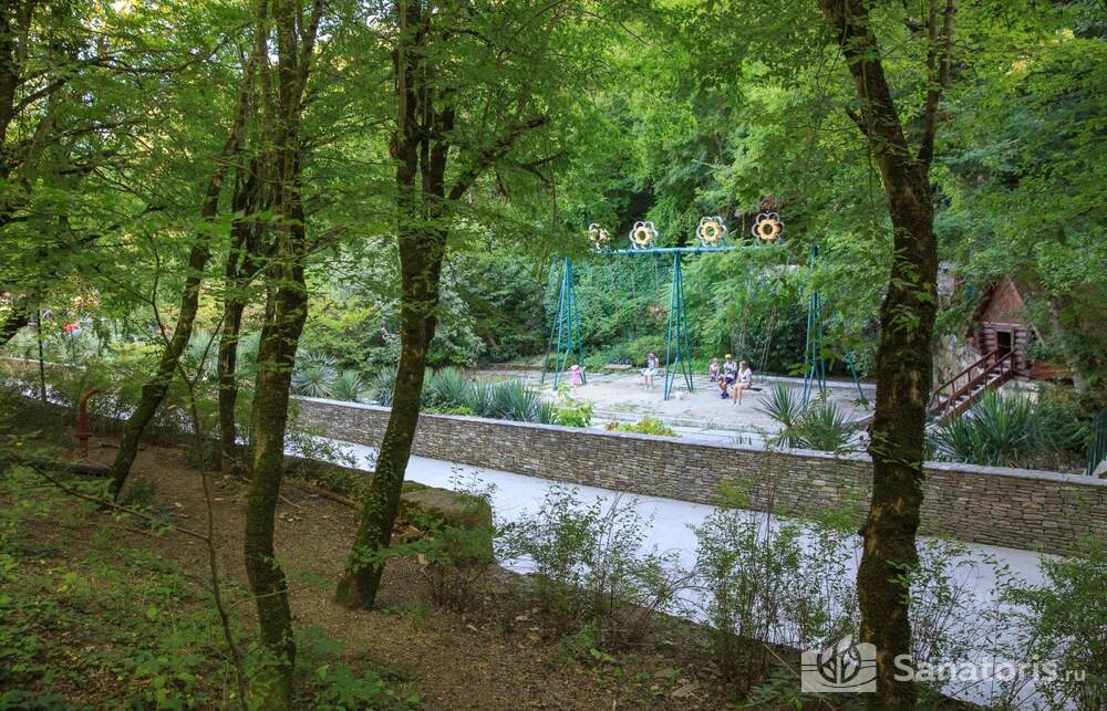 Курортная зона отличается мягким климатом. В летнее время температура на территории здравницы всегда ниже, чем возле моря. Все это становится возможным благодаря лесам, озерам и ручьям.