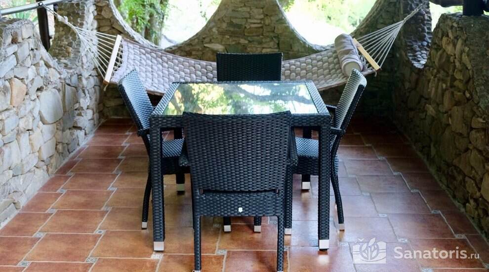 Каждый номер имеет просторную террасу, веранду или балкон. Для удобства постояльцев здесь обустроена летняя мебель и гамаки.