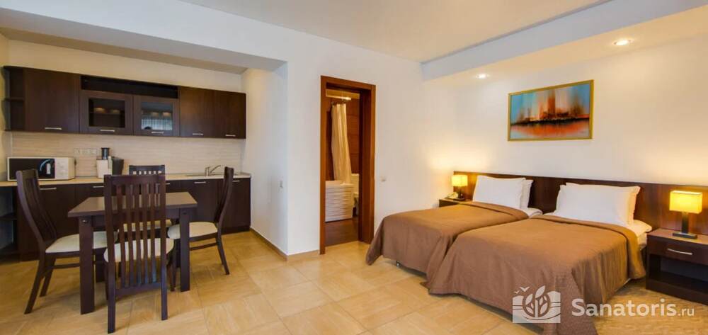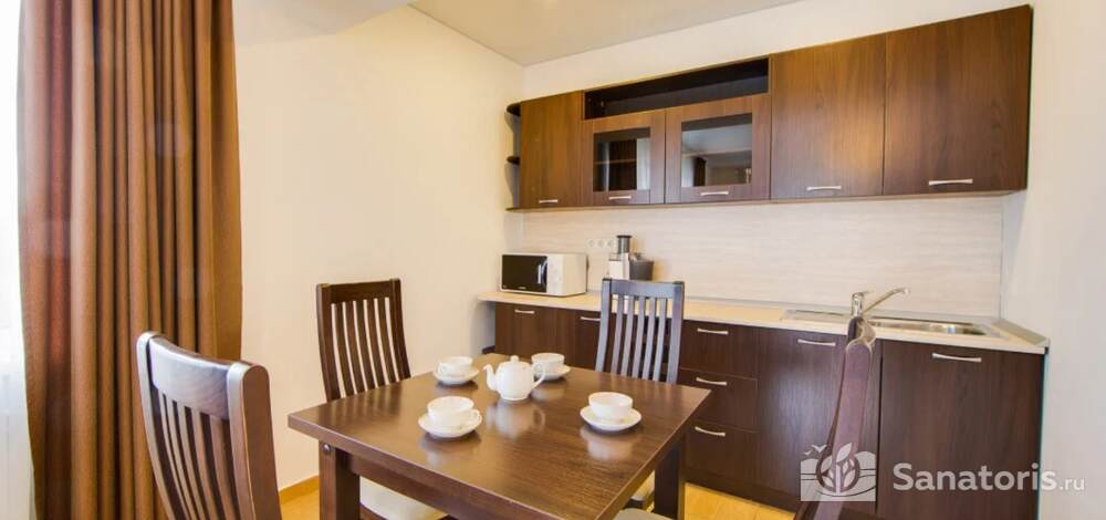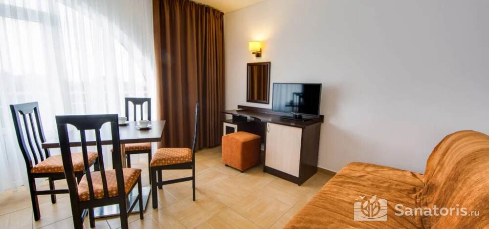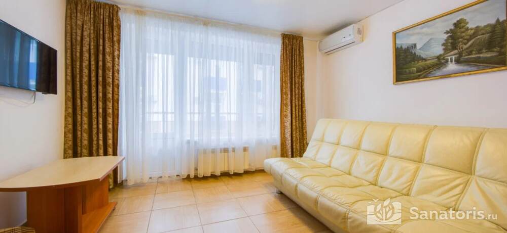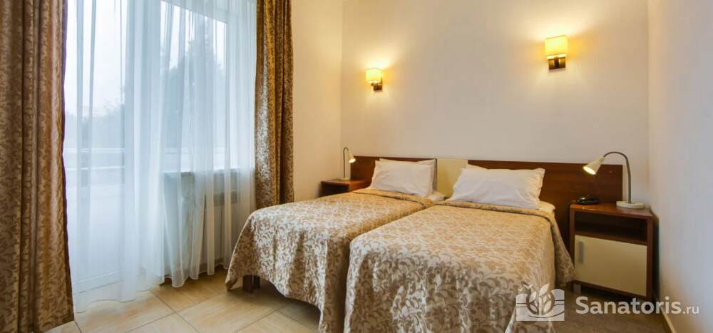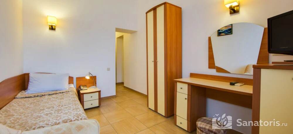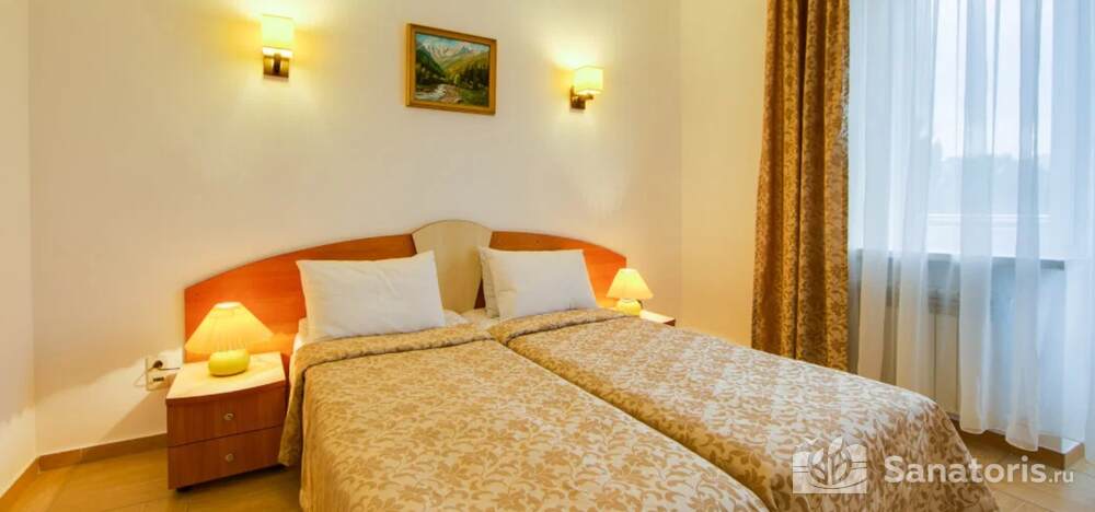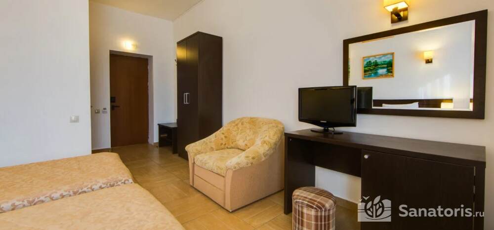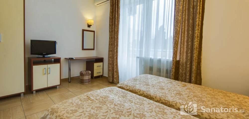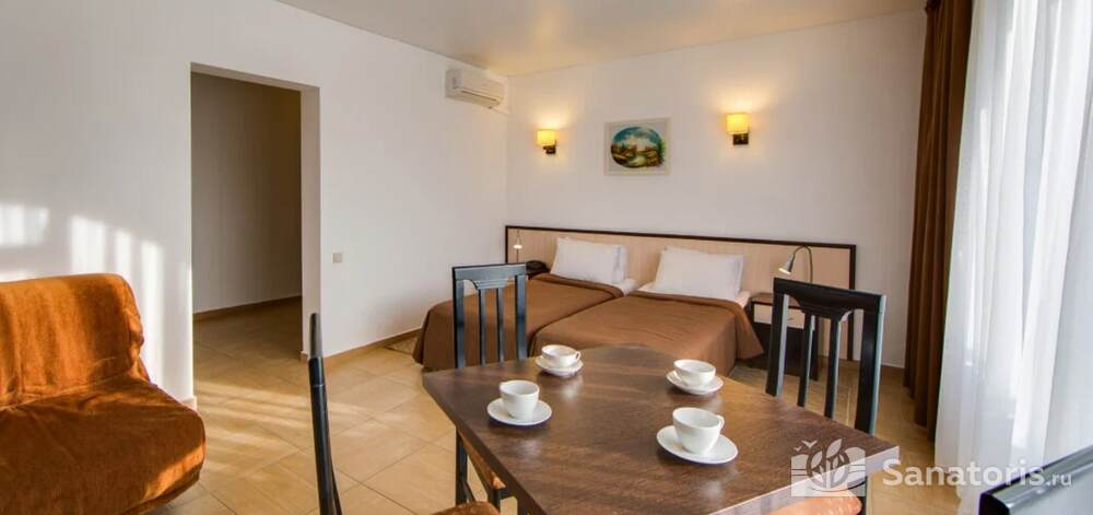 Гостям предоставляются на выбор однокомнатные и двухкомнатные номера, интерьер которых выполнен в классическом стиле. Номерной фонд насчитывает шесть категорий предоставляемого жилья:
