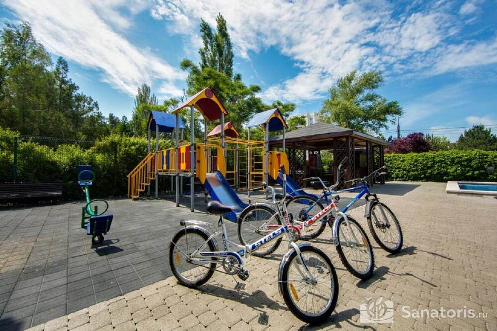 В теплый период работает бассейн открытого типа, разделенный на детскую и взрослую зоны. Предусмотрено наличие игровой комнаты, оборудована площадка для активных игр. Аниматоры и воспитатели помогут организовать досуг своим маленьким подопечным, пока родители отдыхают в баре, на море или у бассейна. На территории пансионата организован прокат велосипедов, которые предоставляются проживающим на безвозмездной основе. Оборудована беседками для отдыха зеленая и лаундж-зона.