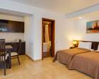 Представляет собой двухкомнатный номер с балконом. Располагает спальней и гостиной, что поделена на обеденную область с кухней и зону отдыха. Имеет два основных и два доп.места, оборудован раскладным диваном и двуспальной кроватью. Предназначен для отдыха большой семьей с детьми, состоящей из 4 человек. Комнаты соединены аркой. Гостям предоставляется два санузла, один из них совмещен с ванной. Из окон открывается хороший вид на улицу.