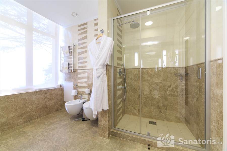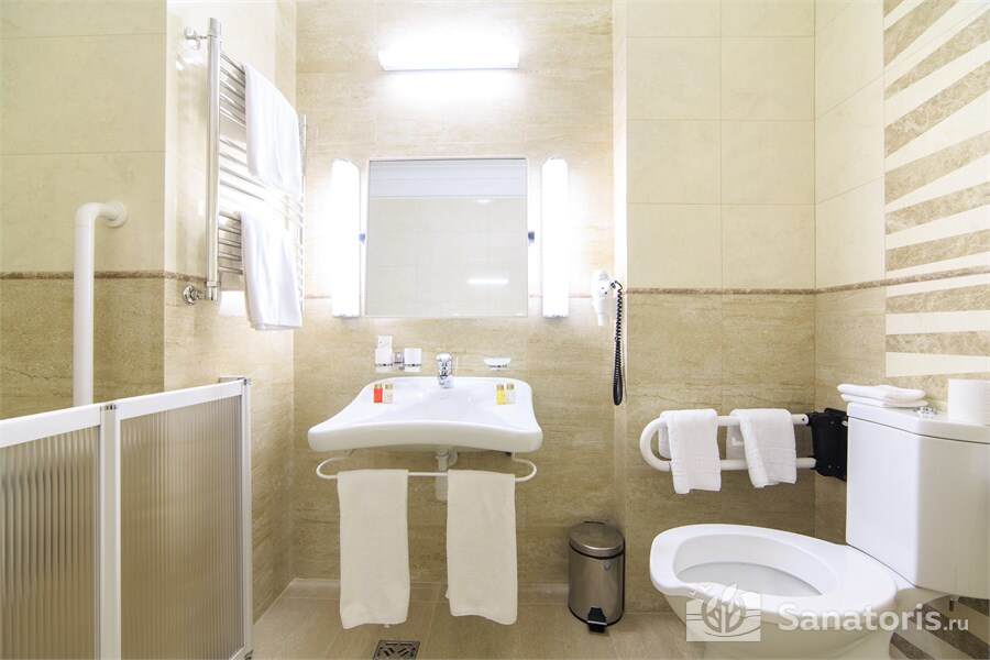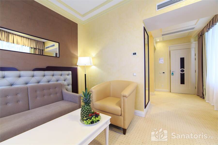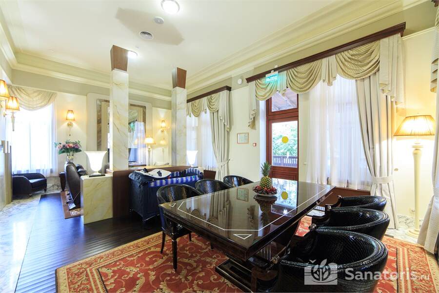 “Спальный” корпус санатория - трехэтажный, в нем гости могут почувствовать, что такое по-настоящему свежий морской бриз. Здесь можно отдохнуть от привычного суетного ритма городской жизни и в то же время не забывать о развлечениях - в этом корпусе есть библиотека, кафе-бар, и даже кинозал.