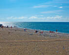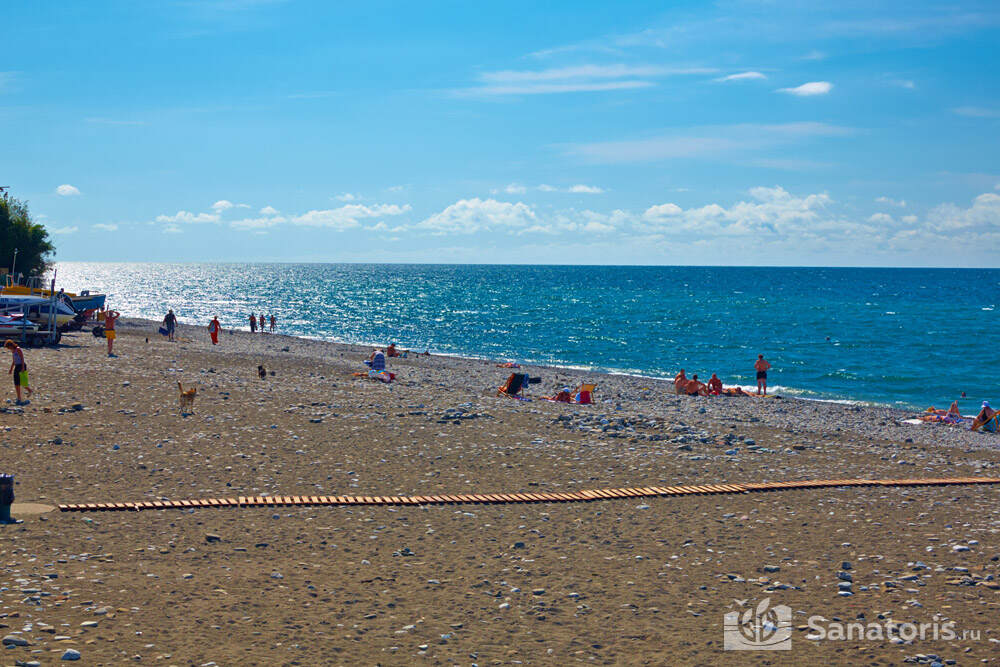 Пляж расположен в 200 метрах от санатория. Здесь есть лежаки, зонты, душевые кабинки. На берегу работает много кафе и закусочных. Отдыхающие могут воспользоваться множеством аттракционов на пляже.