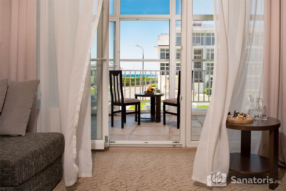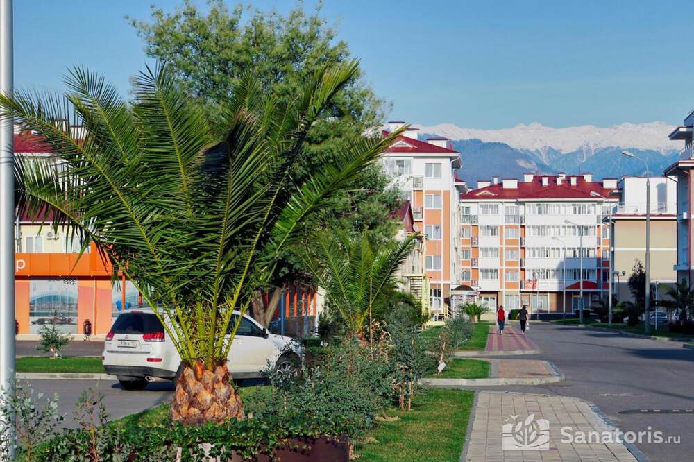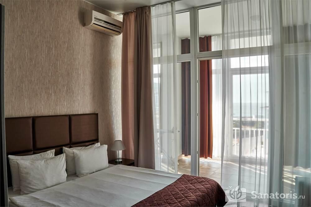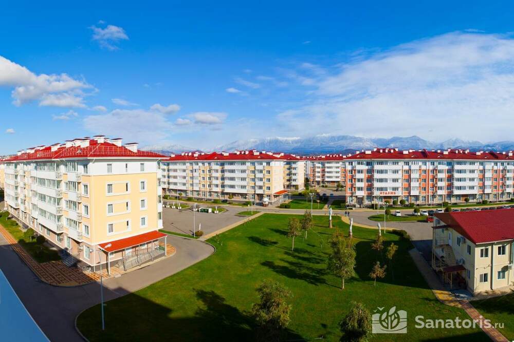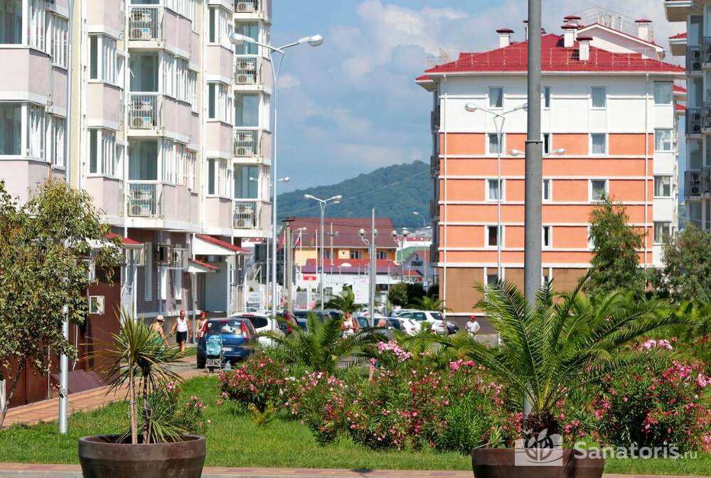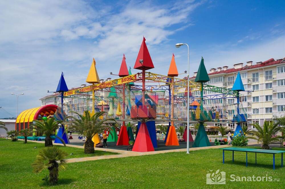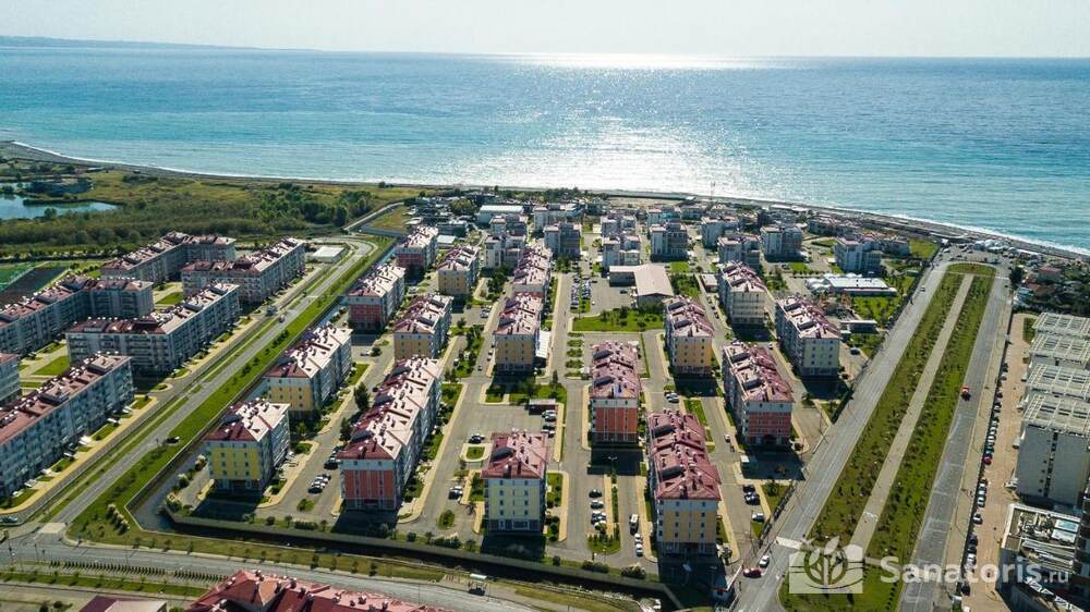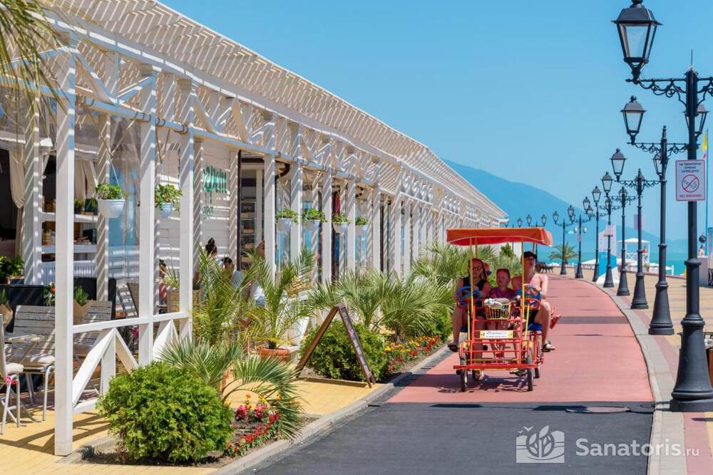 Гостиница «Екатерининский квартал» является самым большим объектом курорта. Она расположена прямо на берегу моря. Постояльцы могут быстро дойти до песчаного пляжа. Здесь есть навесы, кабинки для переодевания, шезлонги, биотуалеты, пункт проката.