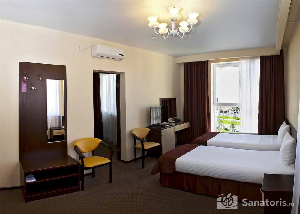 Во всех номерах есть современная мебель, спутниковое телевидение, система кондиционирования. В ванной имеется фен, свежие полотенца, тапочки, халаты и гигиенические принадлежности.