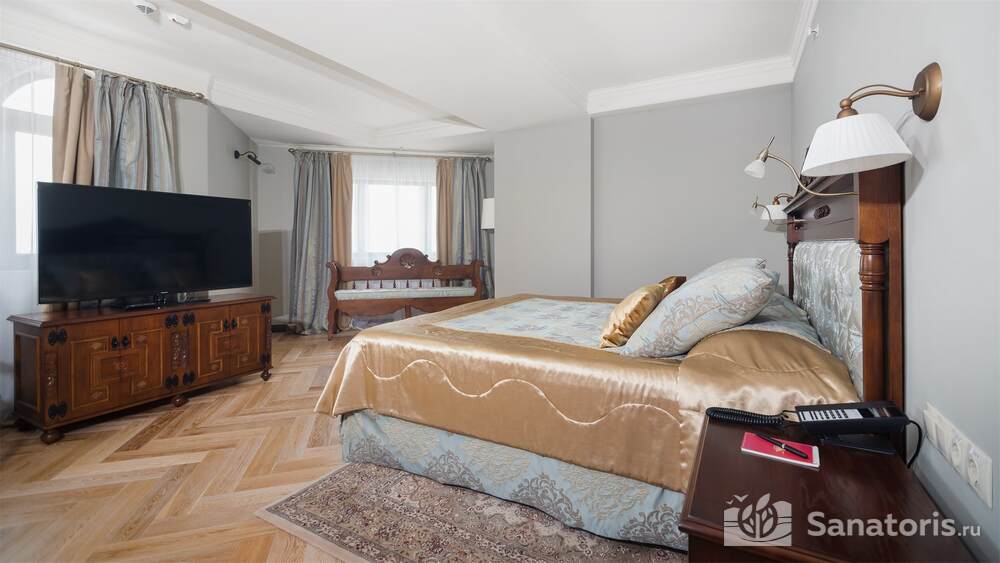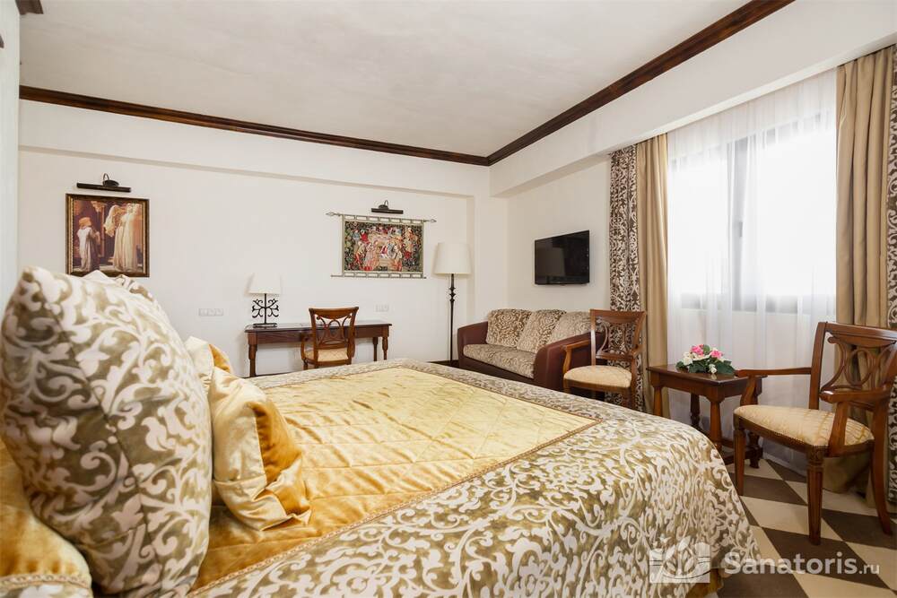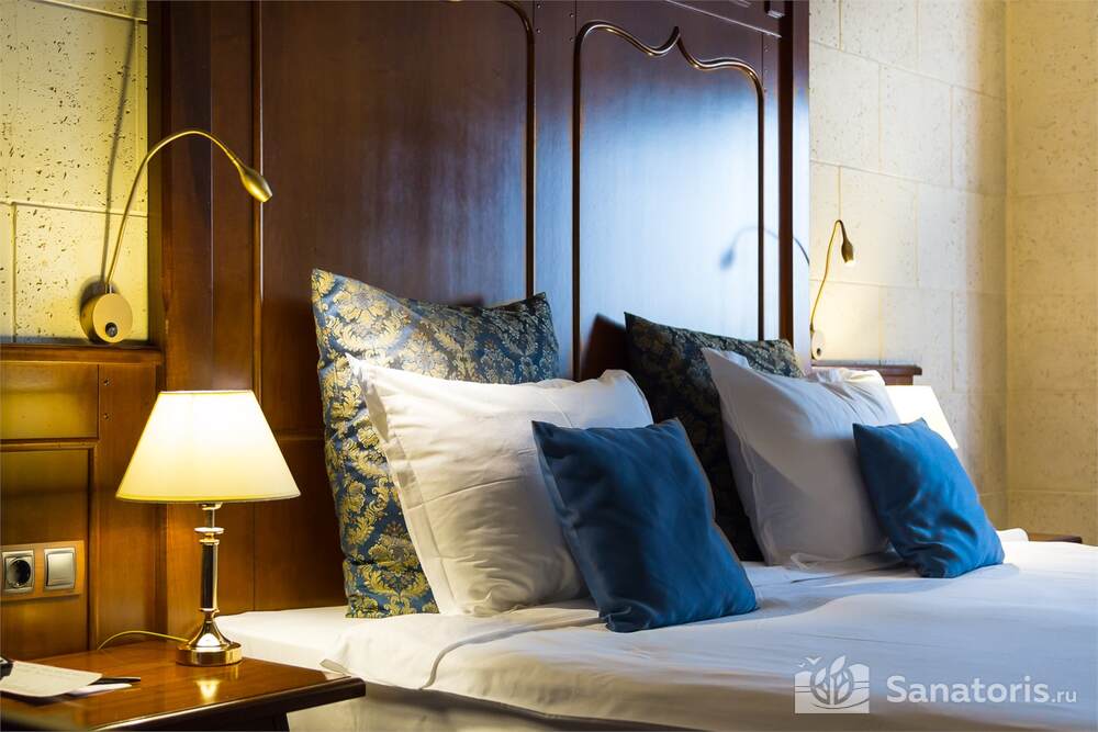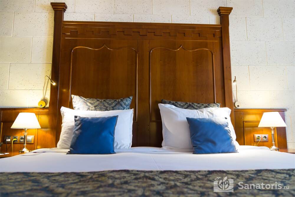 Главное здание и Рыцарский корпус отеля-замка «Богатырь» стилизованы под старину: они выглядят как светлый замок с башенками и арочными окнами. Номера отеля также поддерживают общую стилистику, однако обладают современным уровнем комфорта. Удобная мебель, бесплатный Wi-Fi, телевизор с кабельными и спутниковыми каналами, индивидуальные ванные комнаты – отнюдь не полный список удобств, доступных в номере.