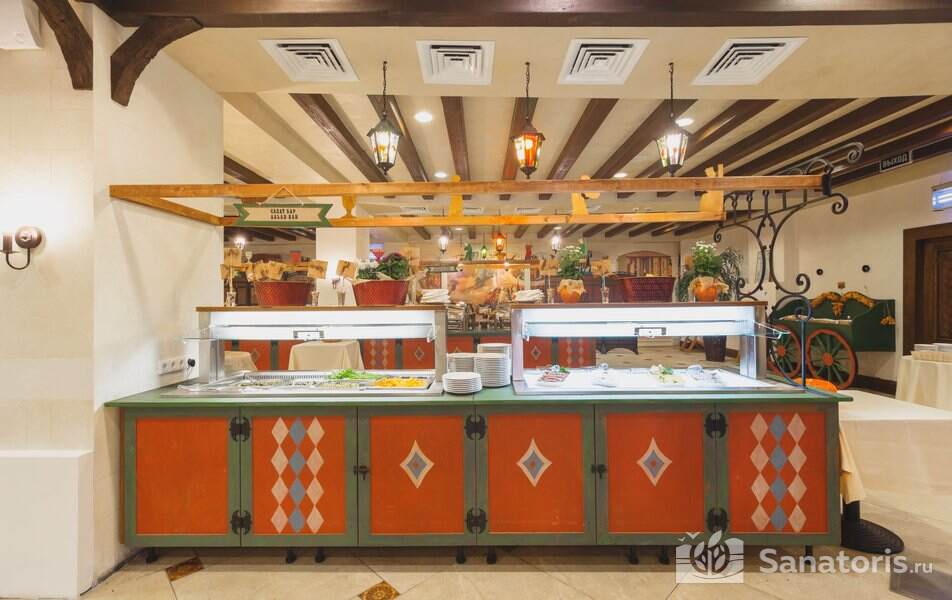 Питание в отеле также богатое и разнообразное. Для жителей «Богатыря» предусмотрен «шведский стол» (счёт за завтраки включен в проживание) и завтрак в номере. Имеются и рестораны, где можно отведать как русскую, так и европейскую кухню, а также лобби-бар, чтобы отдыхать в любое время суток.