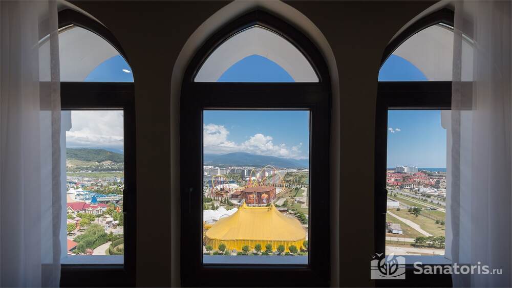 «Богатырь» – это четырехзвездочный отель-замок и выдающееся место для отдыха в городе Сочи. Место нахождения отеля – Сочи Парк, один из 20 лучших тематических парков Европы и известная достопримечательность города. Находясь в столь колоритном месте, «Богатырь» и сам не отстаёт по живописности расположения и архитектурного исполнения.