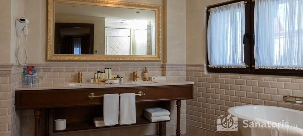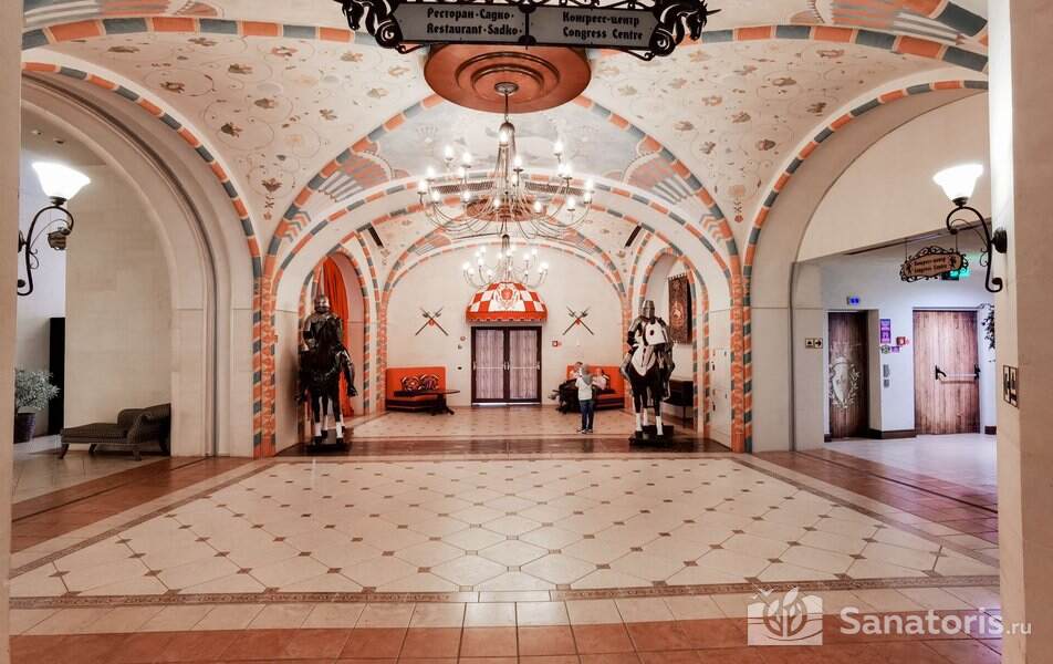 Но и помимо вкусного питания есть много полезного и интересного. «Богатырь» может похвастаться полноценным СПА-комплексом, в котором присутствует термальная зона и крытый бассейн (со своим баром), а летом работает и открытый. Для ценителей активного образа жизни есть также хорошо оснащенный фитнес-центр и настольный теннис, а для любителей банных процедур – парная, сауна и хаммам. К услугам гостей замок-отель предлагает круглосуточный сервис. Присутствуют парковочные места, прачечная и химчистка, комната для багажа. На территории расположены банкоматы, различные магазины и медпункт. Въезд в отель круглосуточный.
